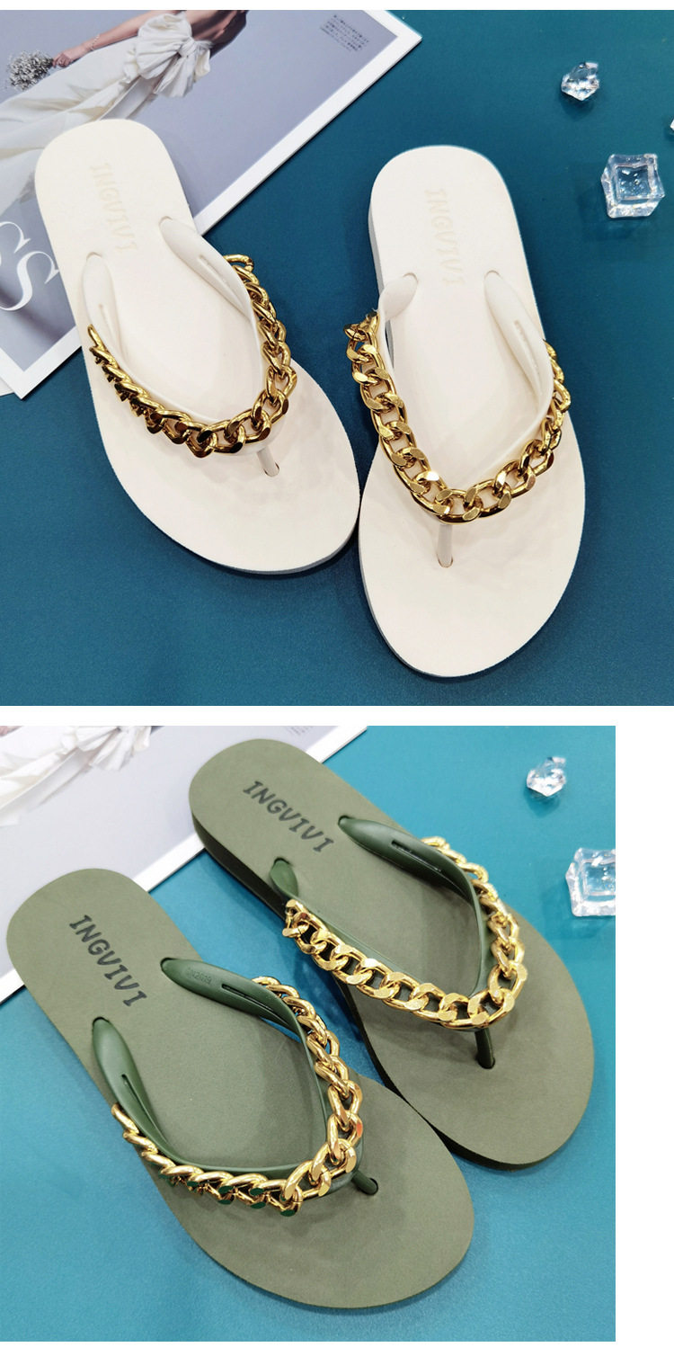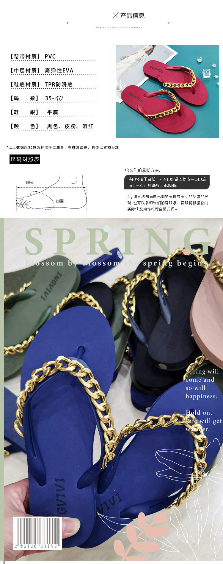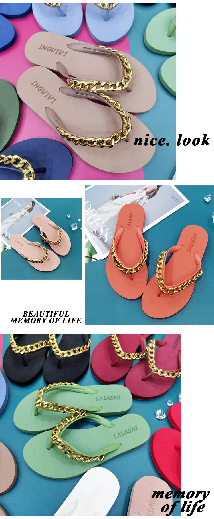 23 New Fashion Flat Flip Flop Women's Summer Beach Shoes Chain Korean Style Rhinestone Women's Slippers Can Be Weared Outside in the Water