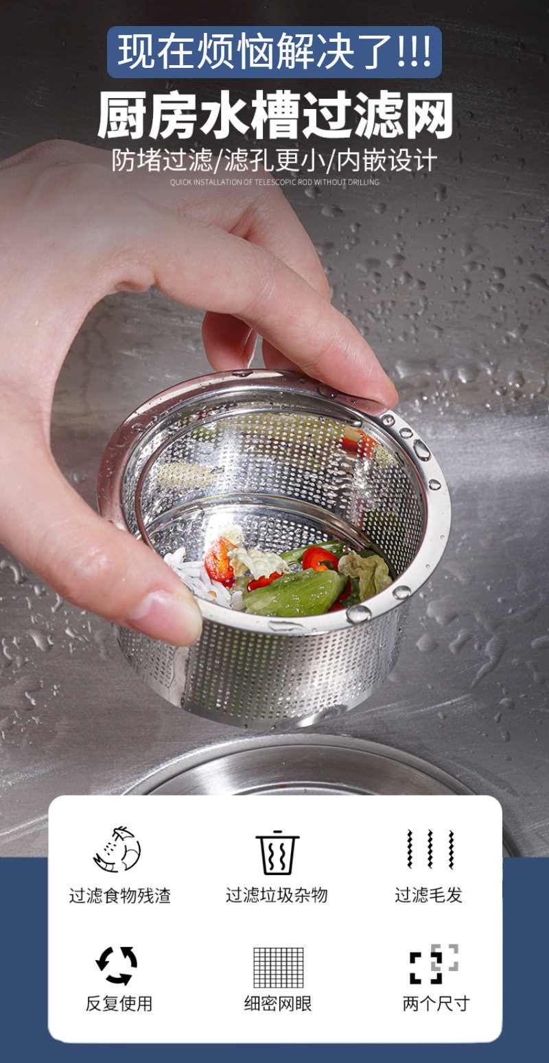 Kitchen sink garbage filter fine mesh fine hole sewer vegetable basin sink bowl stainless steel basket