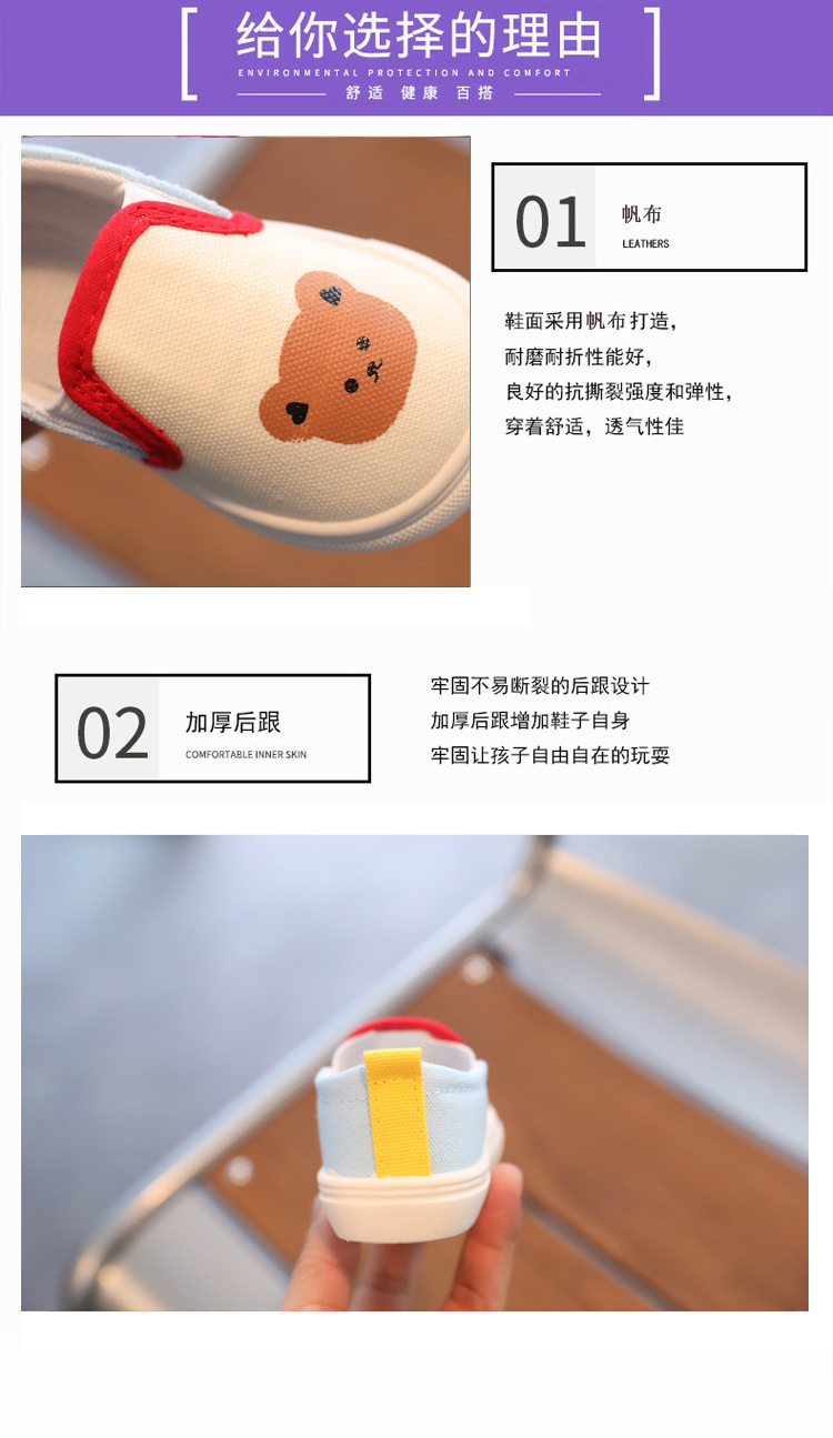 Children's Canvas Shoes Spring & Fall New Slip-On Cartoon Boys and Girls Lightweight Soft-Soled Shoes Non-Slip Kidsren's Shoes