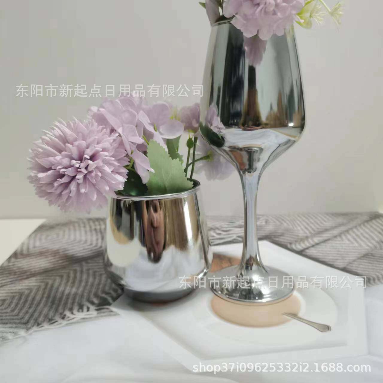 Silver Goblet Wine Glass for Home Bar Cocktail Wine Goblet Champagne Glass
