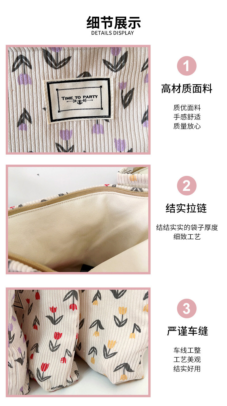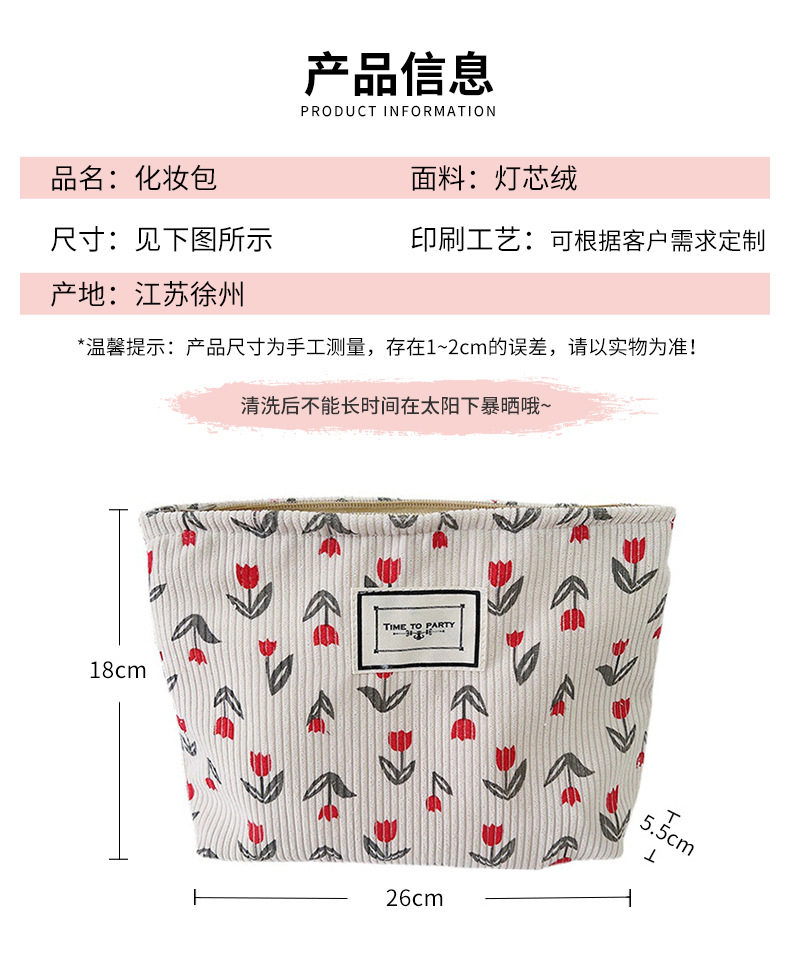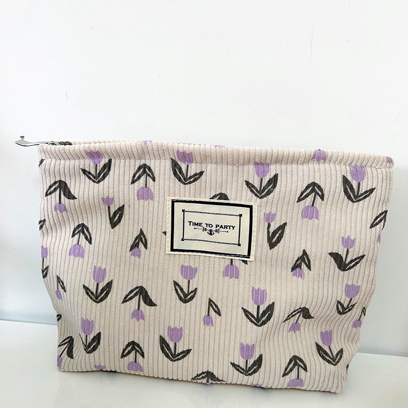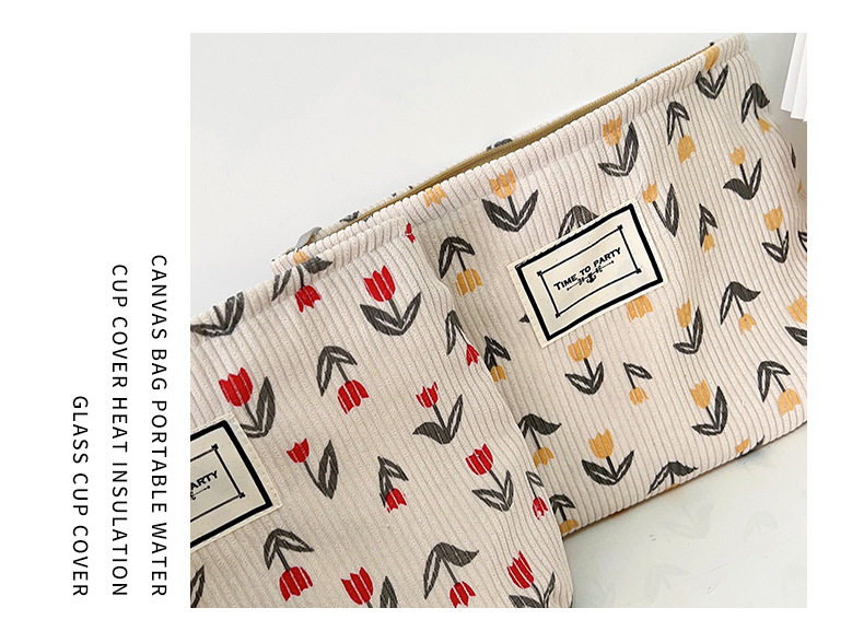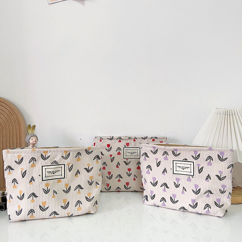 Corduroy Cosmetic Bag Women's New Mori Flower Clutch Bag Portable Travel Storage Bag Zipper Wash Bag