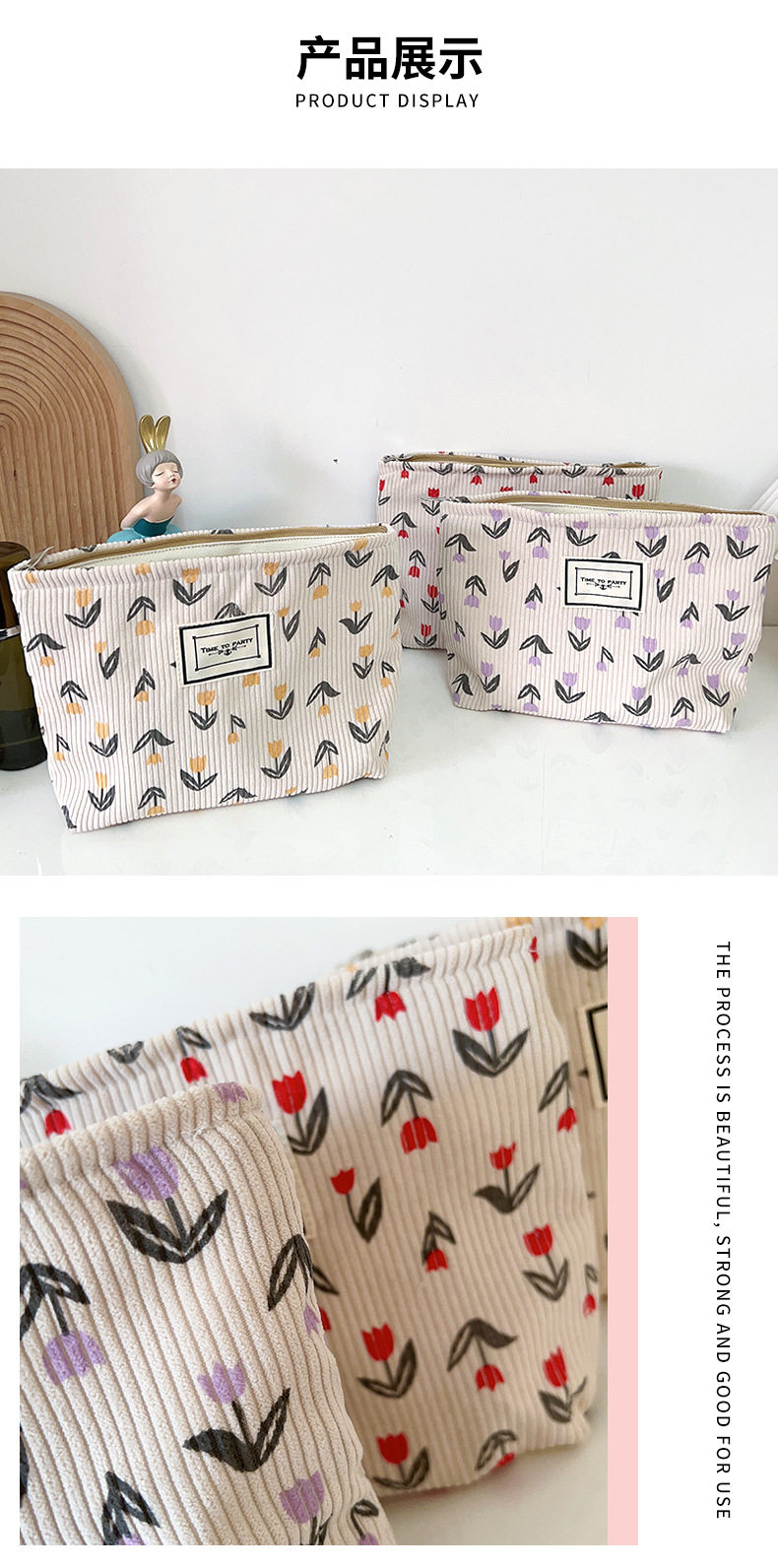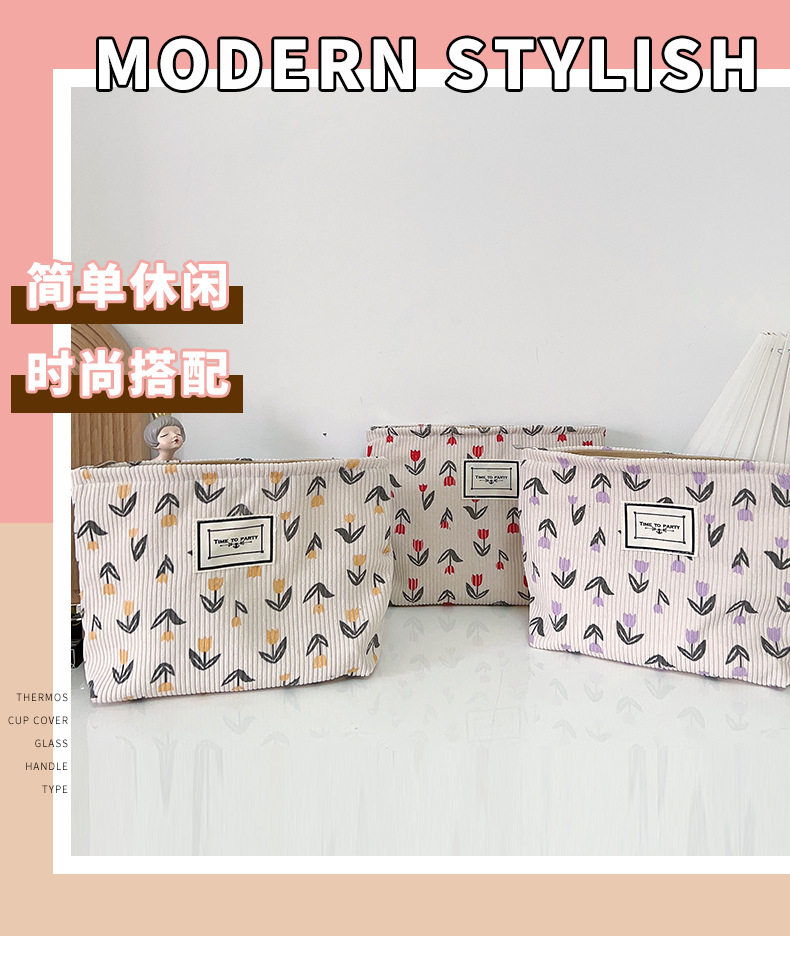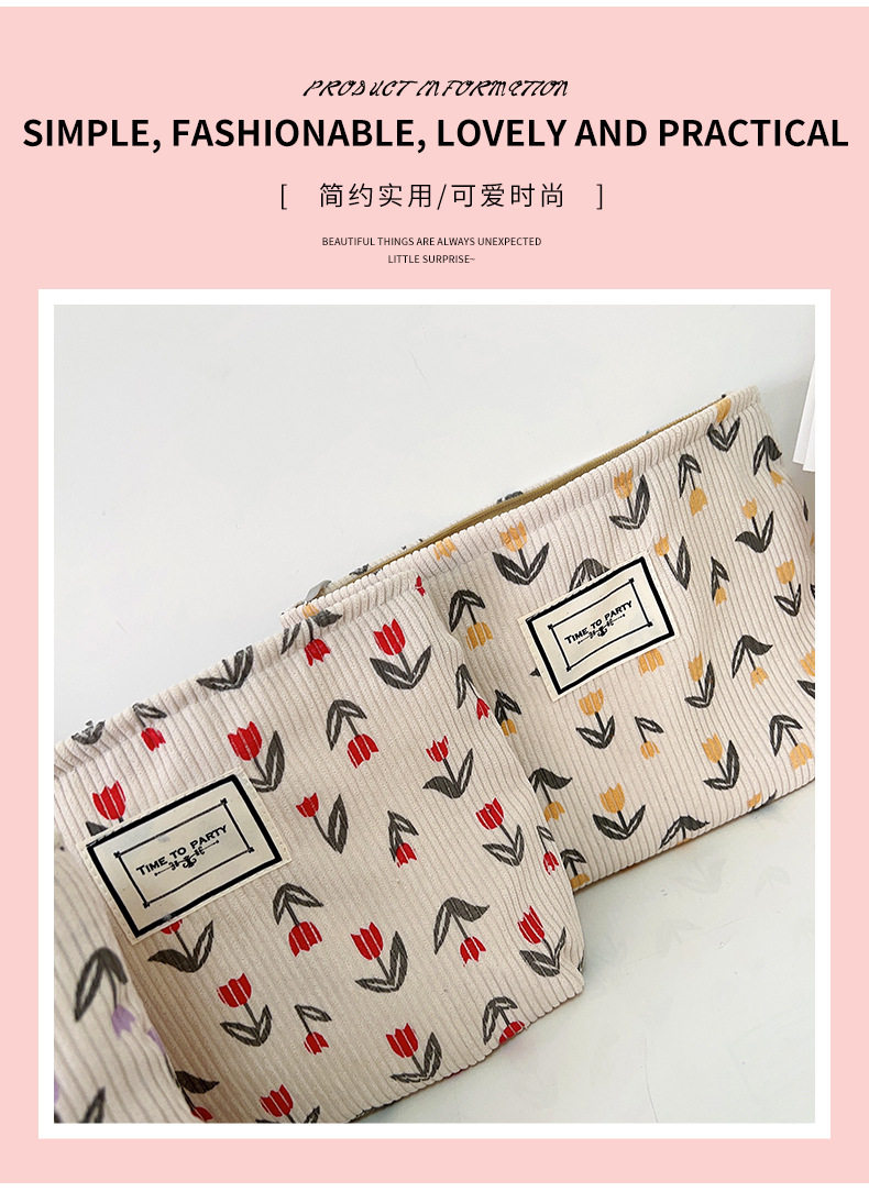 Corduroy Cosmetic Bag Women's New Mori Flower Clutch Bag Portable Travel Storage Bag Zipper Wash Bag