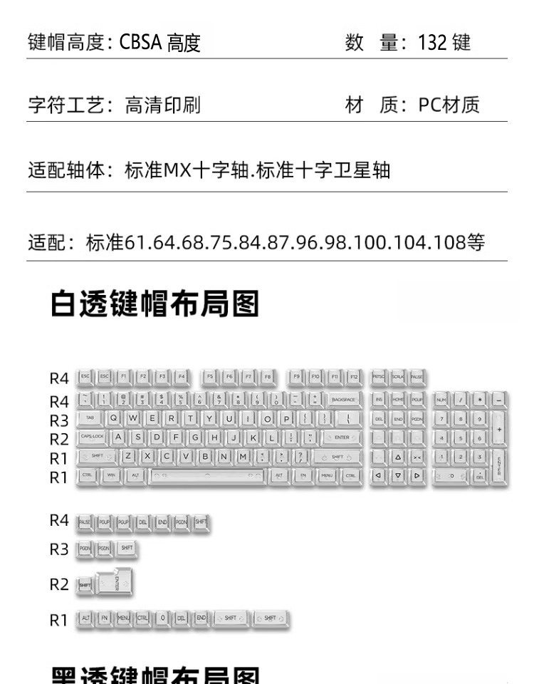 | Color | White transparent keycap 132 key complete set (not a keyboard),Black transparent keycap 132 key complete set (not a keyboard),White 22-key digital keycap (not a keyboard),Black 22-key digital keycap (not a keyboard) |
