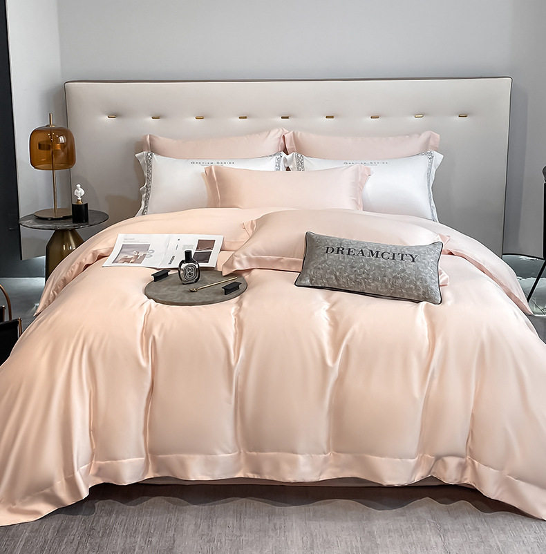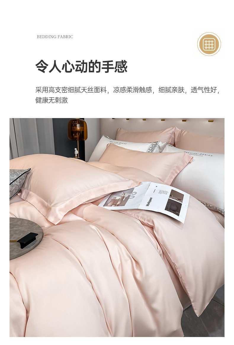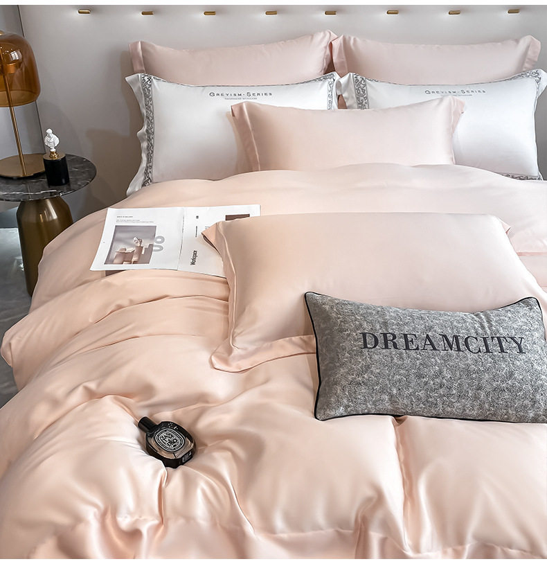 200-Count Lenzing Tencel Four-Piece Summer Ice Silk Bed Sheet Set, Silk Duvet Cover for 1.8m Bed, Fitted Sheet Style, Thin Bedding