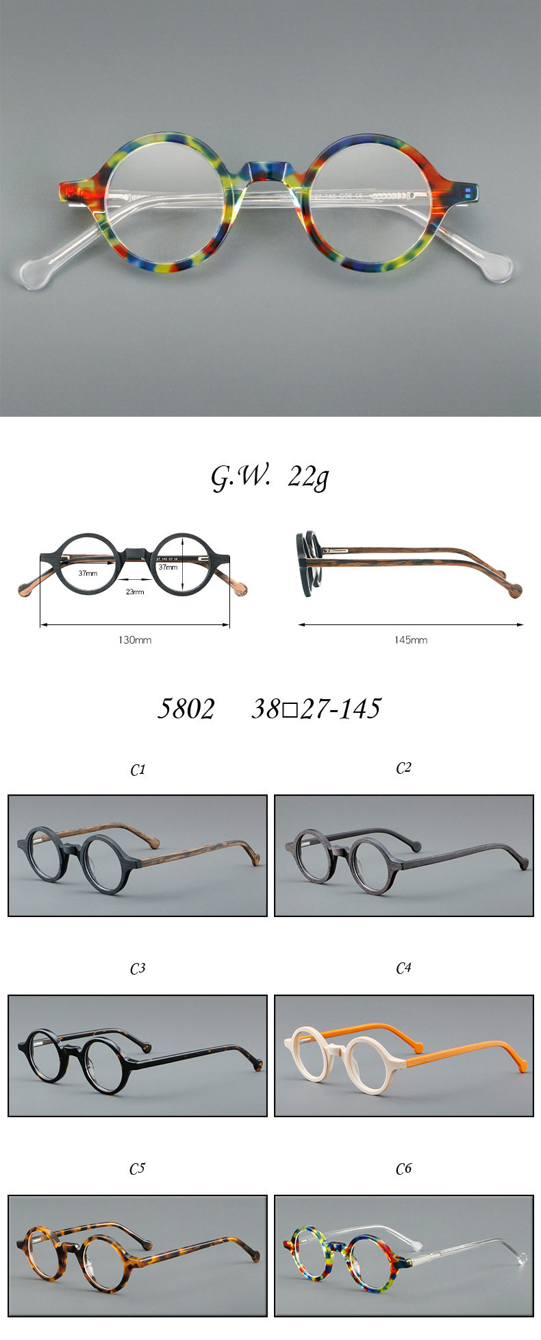 | Frame color | C1 black frame wood grain legs,C2 coffee color wood grain,C3 black tortoise shell,C4 yellow frame orange legs,C5 tea tortoise shell,C6 flower tortoise shell,For myopia, please contact customer service |
