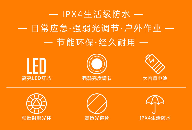 | Applicable environment | Hiking,Camping,Self-Defense,Teaching,Search,Daily carry,Night Ride,Night fishing,Patrol |