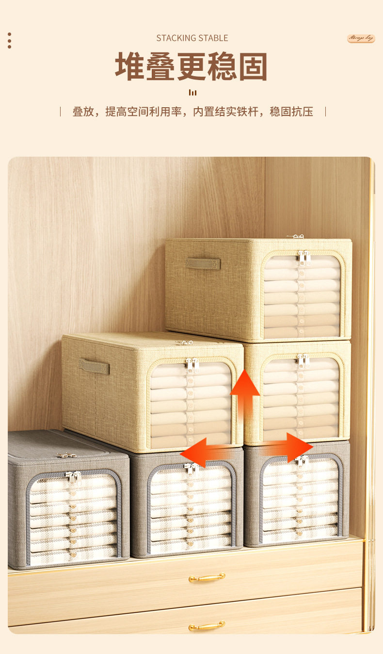 Cotton and Linen Deepened Clothes Box Home Wardrobe Wardrobe Toy Storage Box Portable Foldableable Storage Box