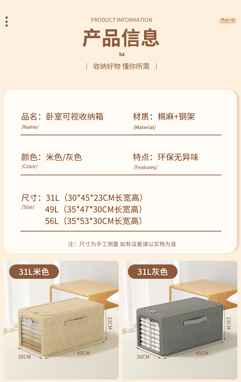 | Product name | Bedroom visual storage box |