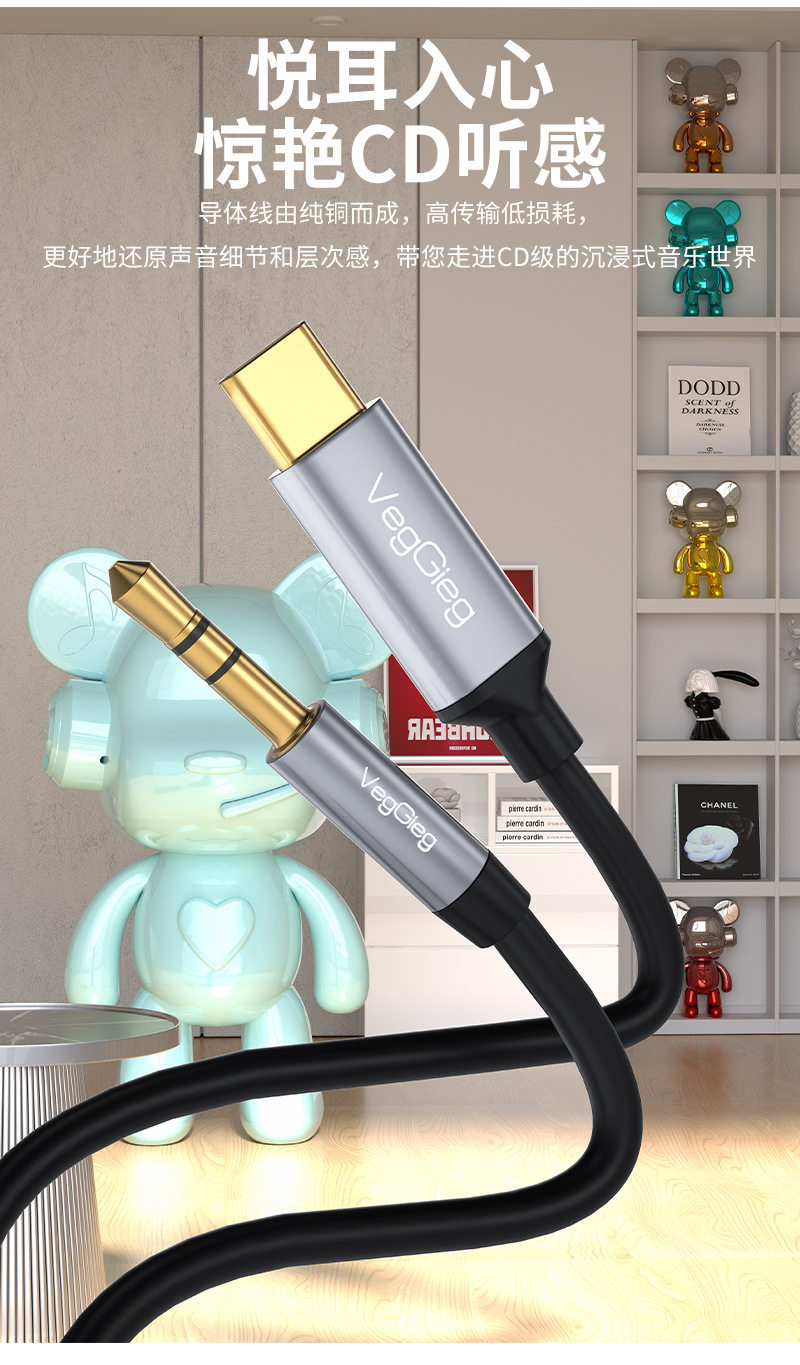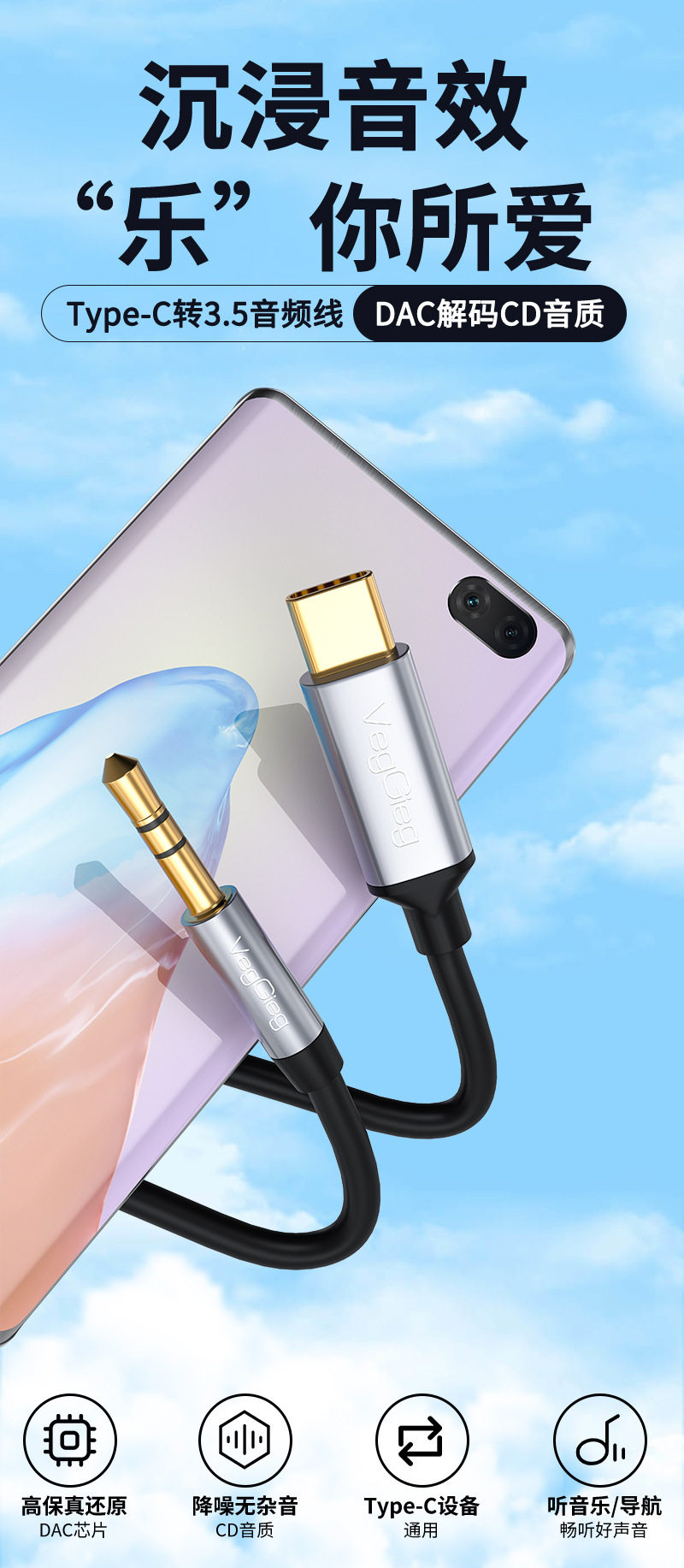 Weige Type-C to 3.5 Audio Line Mobile Phone to Car Speaker Car Lossless Sound Quality AUX Interface Adapter