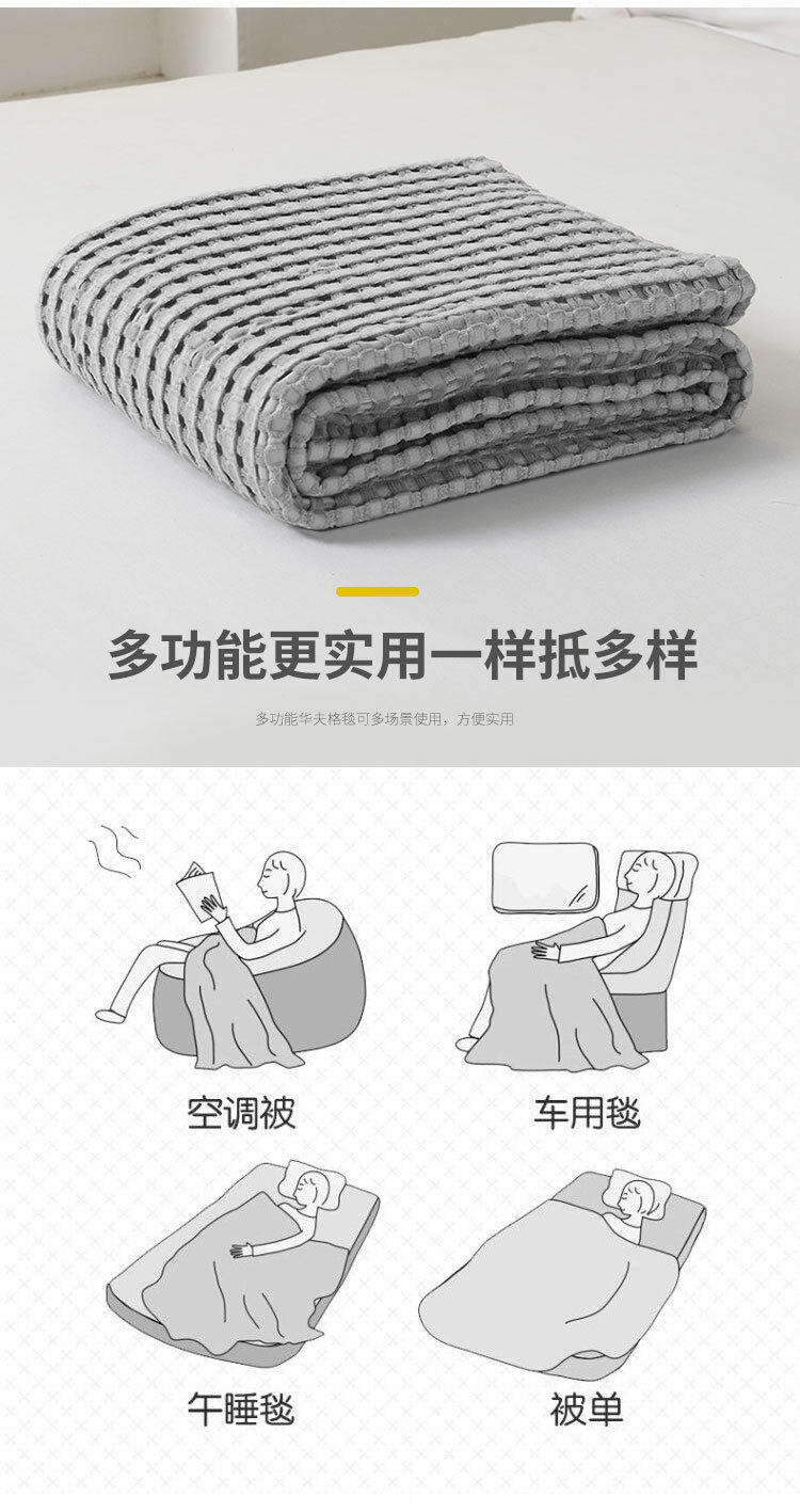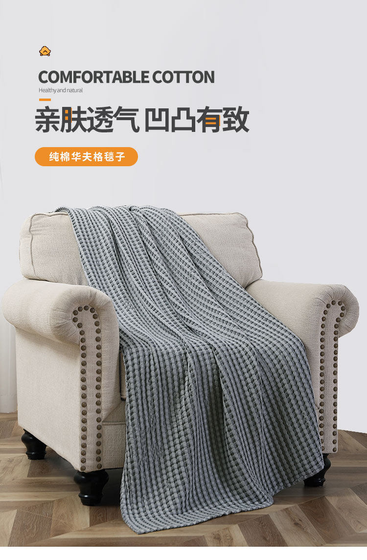 Nordic Style Pure Cotton Waffle Blanket Nap Blanket Light Luxury Four Seasons Universal ins Sofa Solid Color Casual Blanket Wholesale