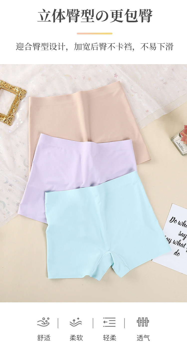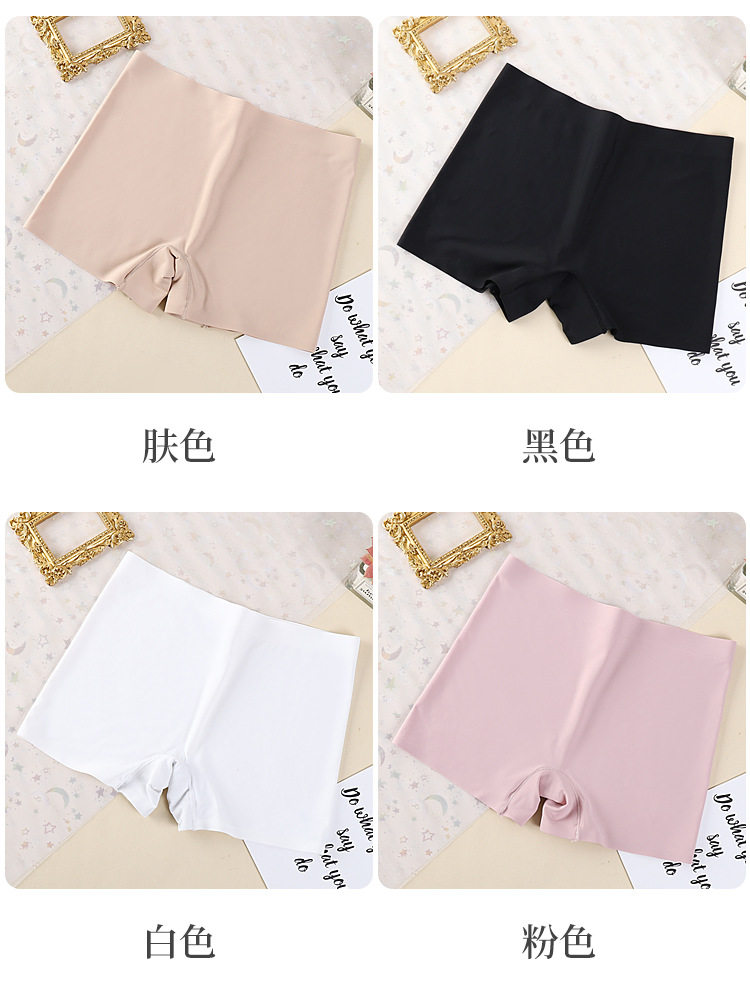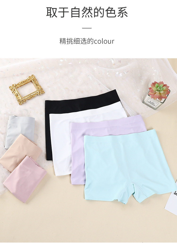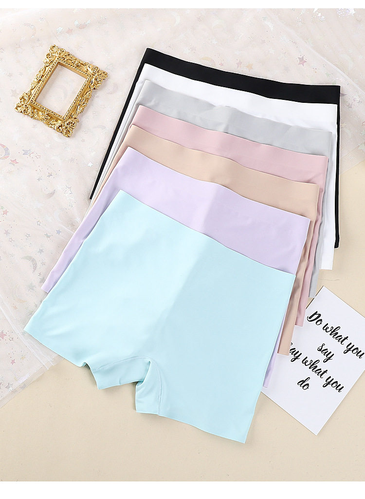 One-piece Ice Silk Seamless Mid-waist Solid Color Cotton Crotch Breathable Large Size Women's Boxer Panties Women's Anti-slip Safety Pants