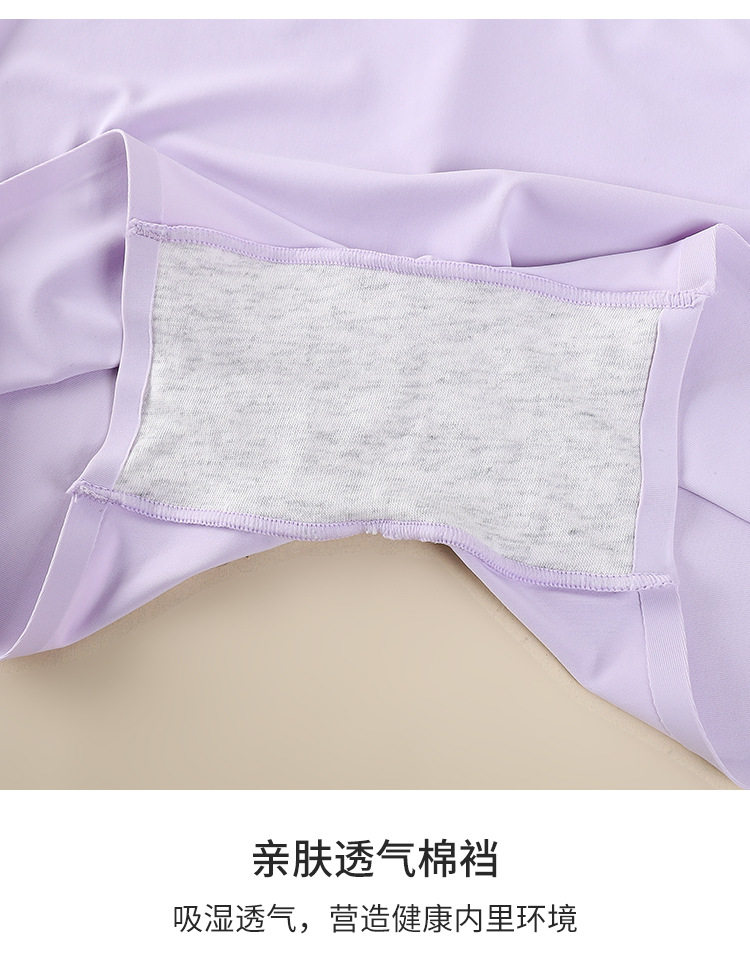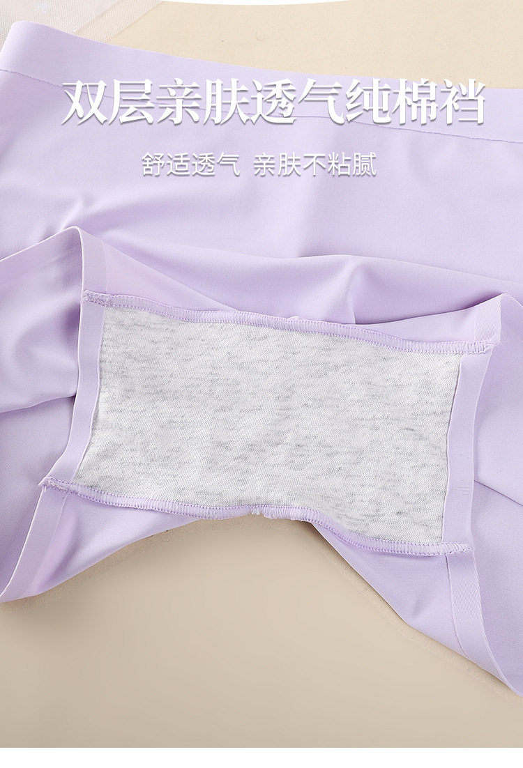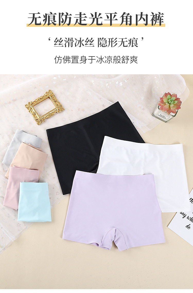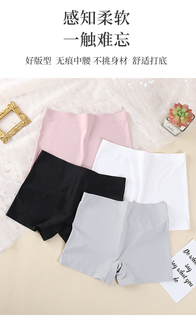 One-piece Ice Silk Seamless Mid-waist Solid Color Cotton Crotch Breathable Large Size Women's Boxer Panties Women's Anti-slip Safety Pants