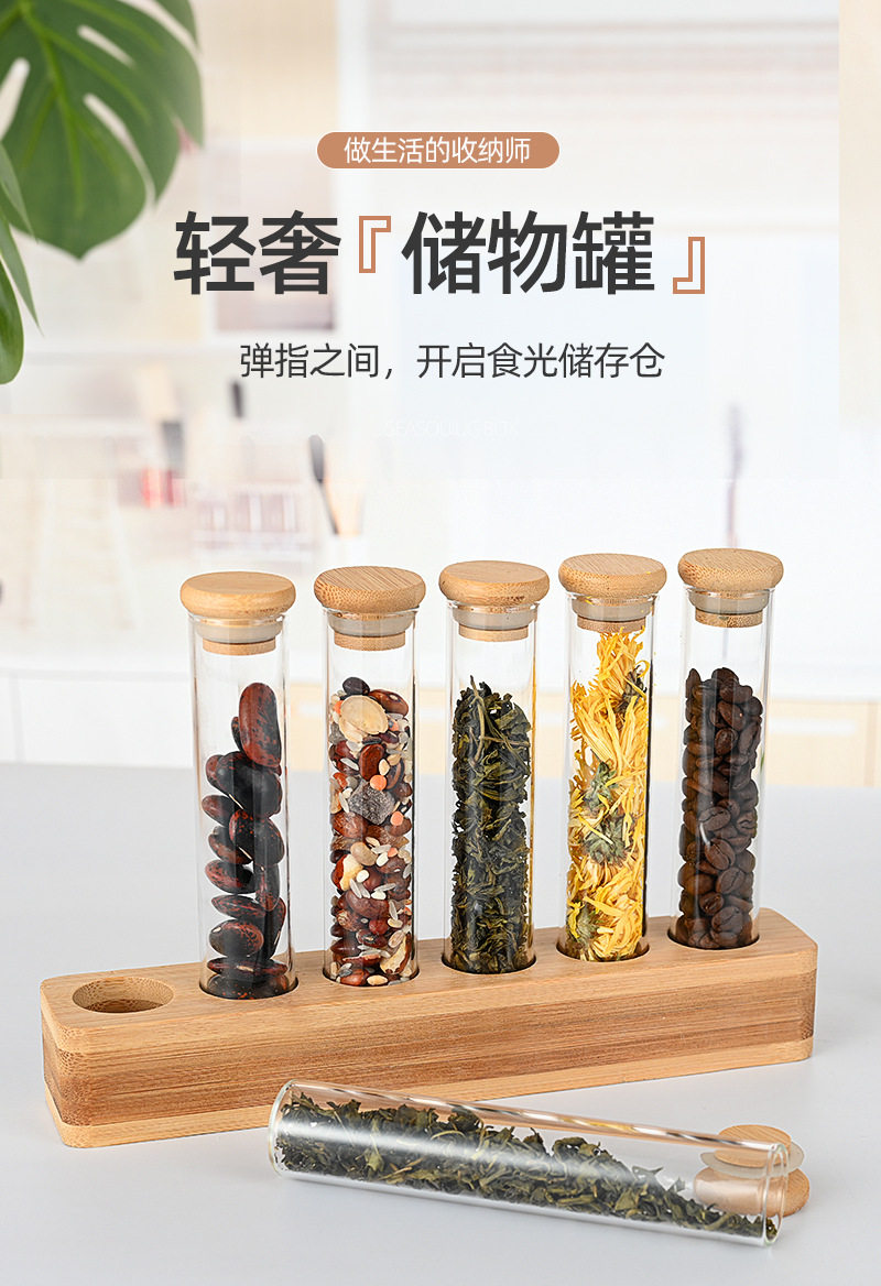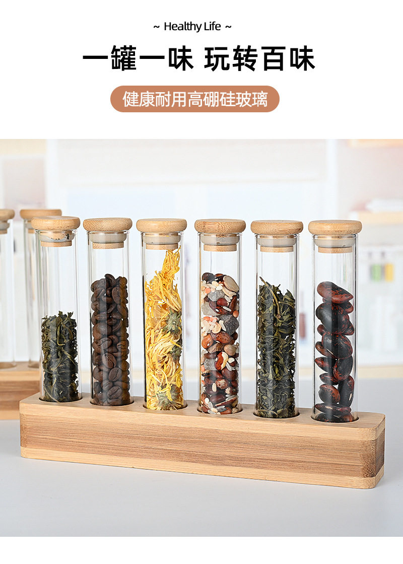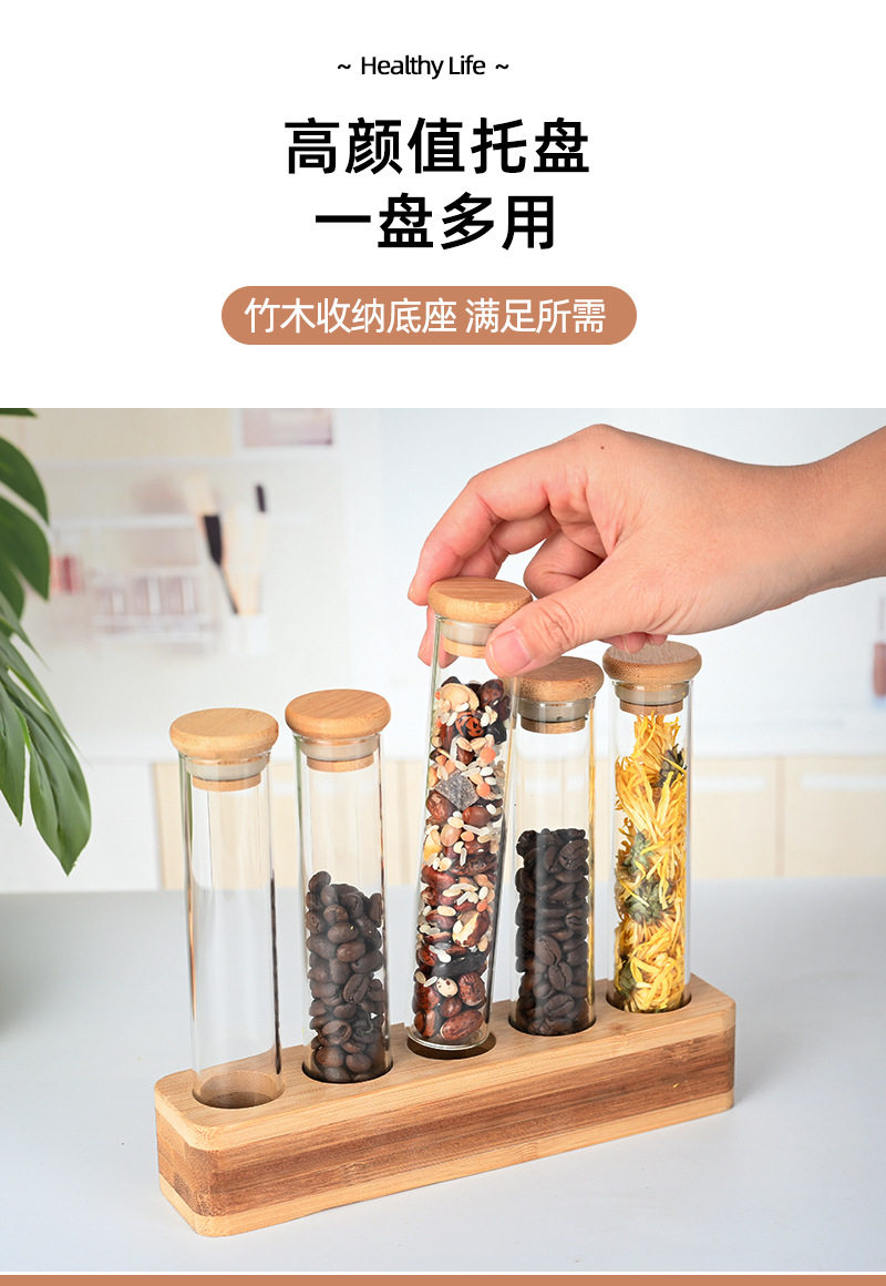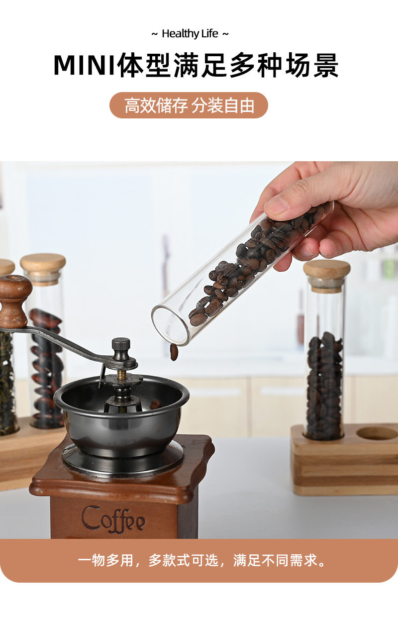 Vertical multi-functional sealed can bar counter decoration coffee bean display stand wooden stand bamboo storage glass storage box