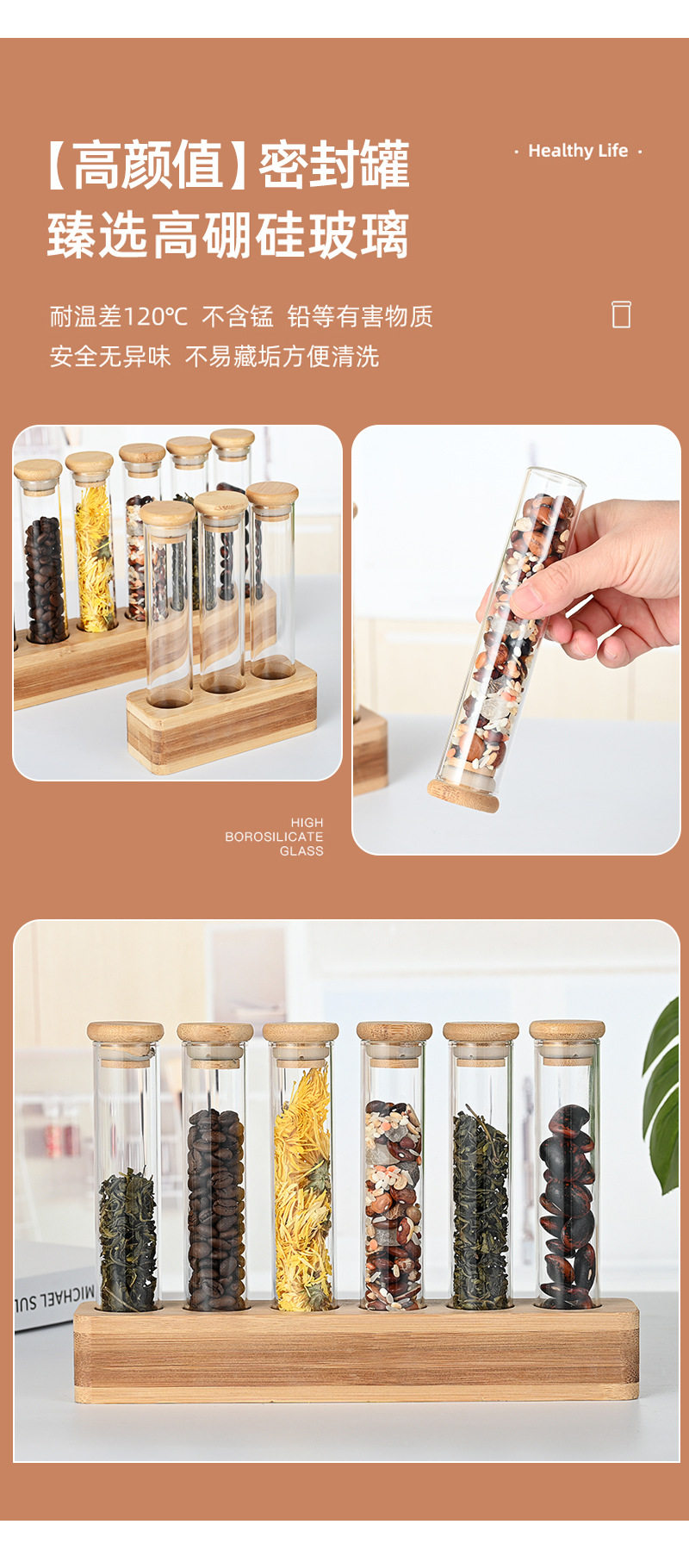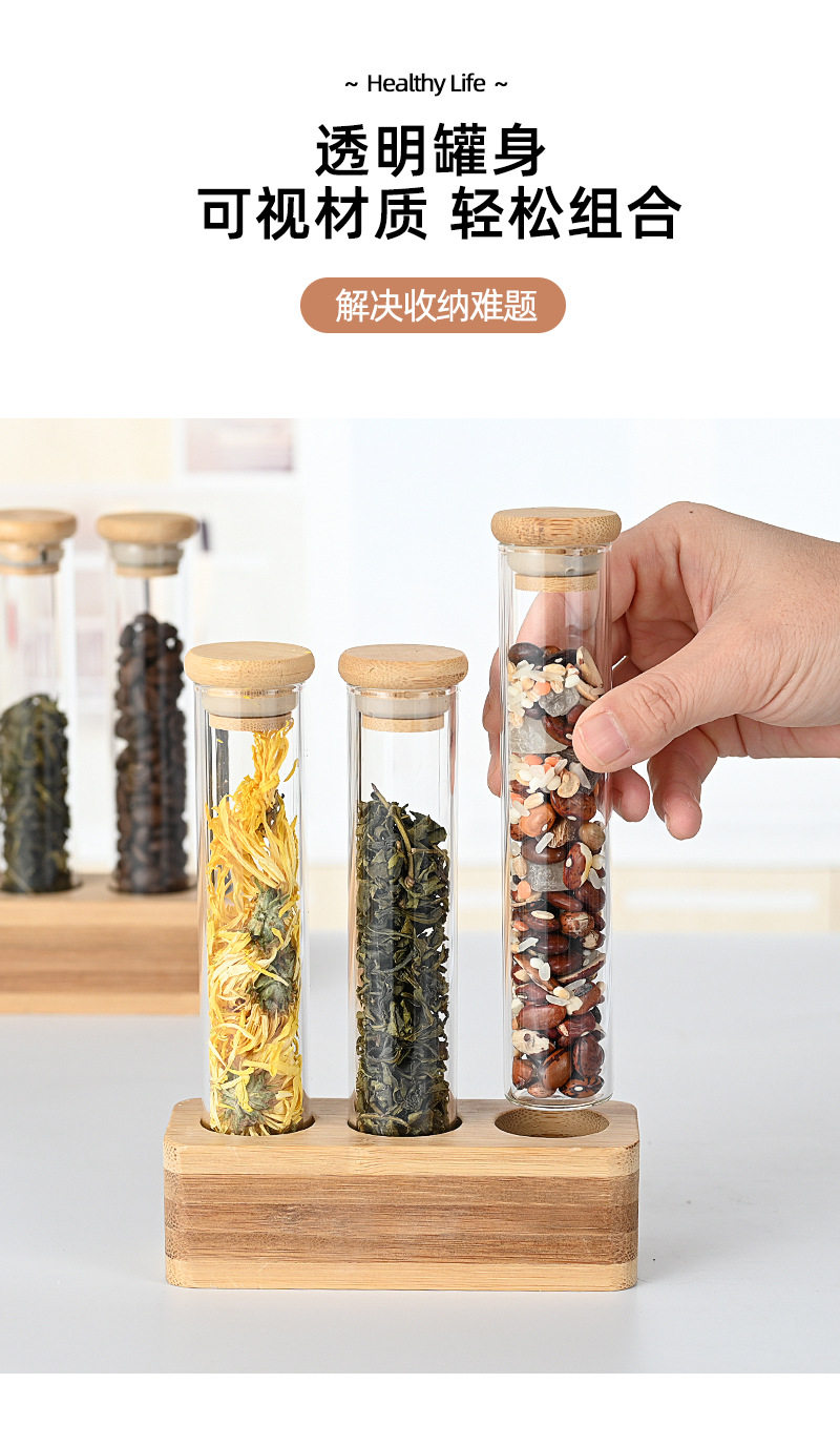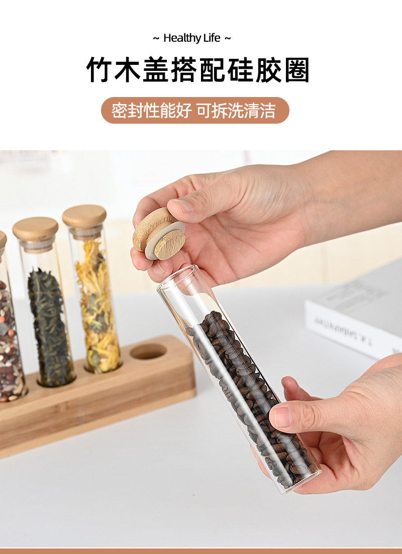Vertical multi-functional sealed can bar counter decoration coffee bean display stand wooden stand bamboo storage glass storage box
