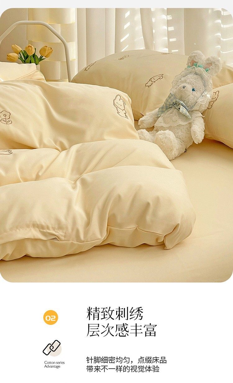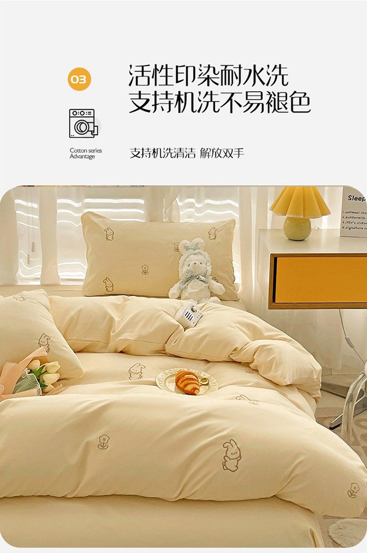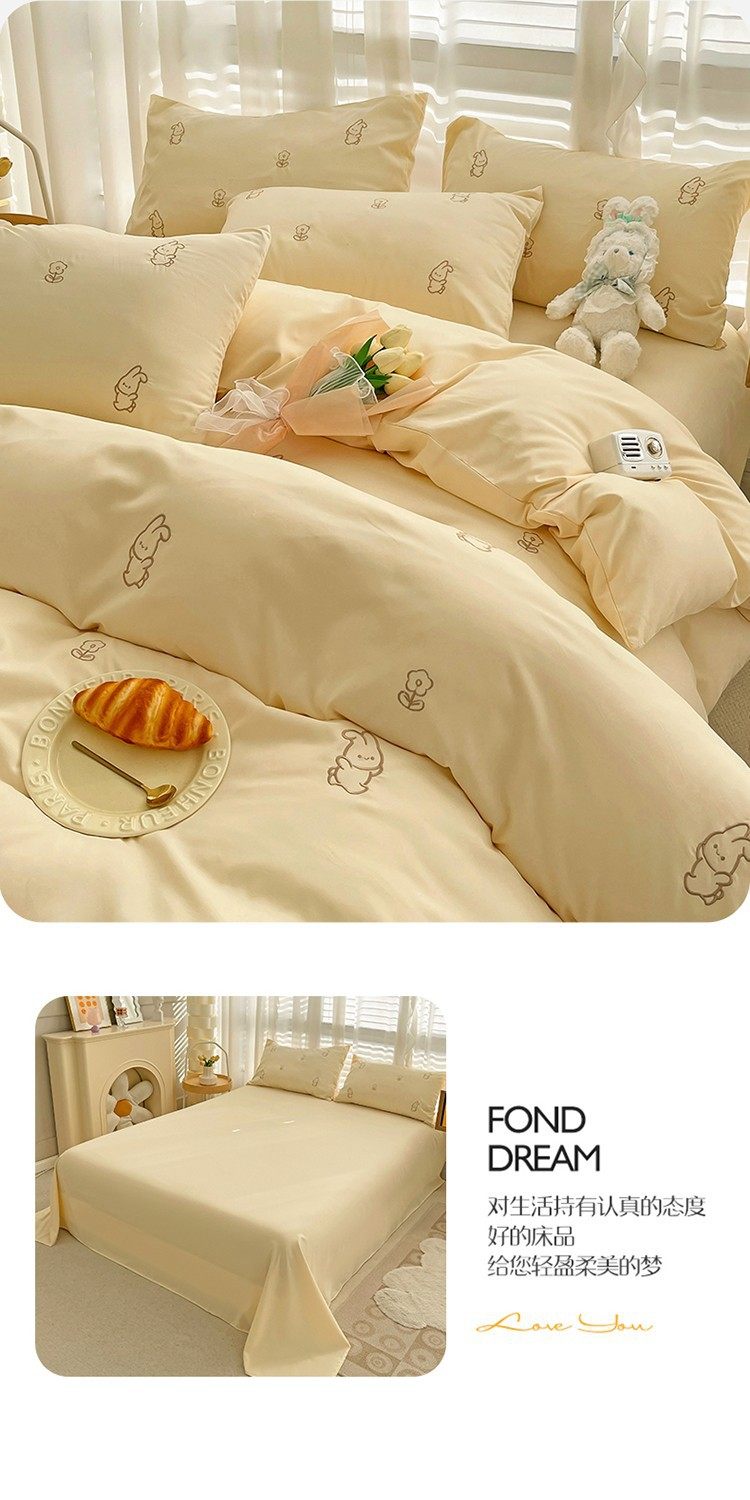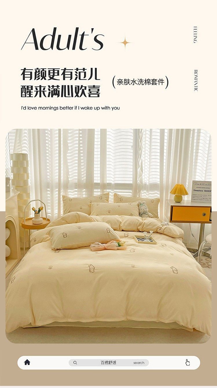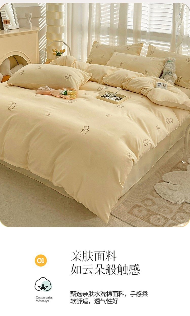 Simple Washed Cotton Four-piece Set Quilt Cover Bed Sheet Bed Hat Spring and Autumn Kit Korean Style Princess Style Cotton Bedding