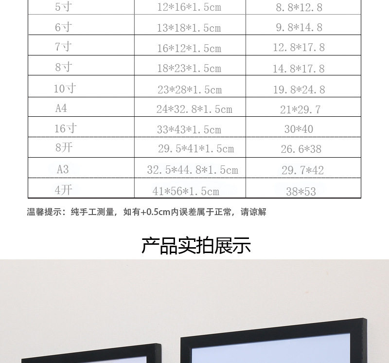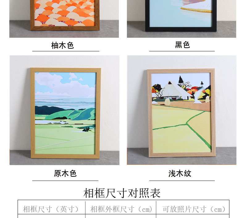 | Frame size | 5inch (8.8x12.8) cm,6inch (9.8x14.8)cm,7inch (12.8x17.8)cm,8inch (14.8x19.8) cm,10inch (19.8x24.8)cm,A4(21x29.7)cm,A3(29.7x42)cm,16inch (30x40)cm,8K(26.5x38)cm,4K(38x53)cm |