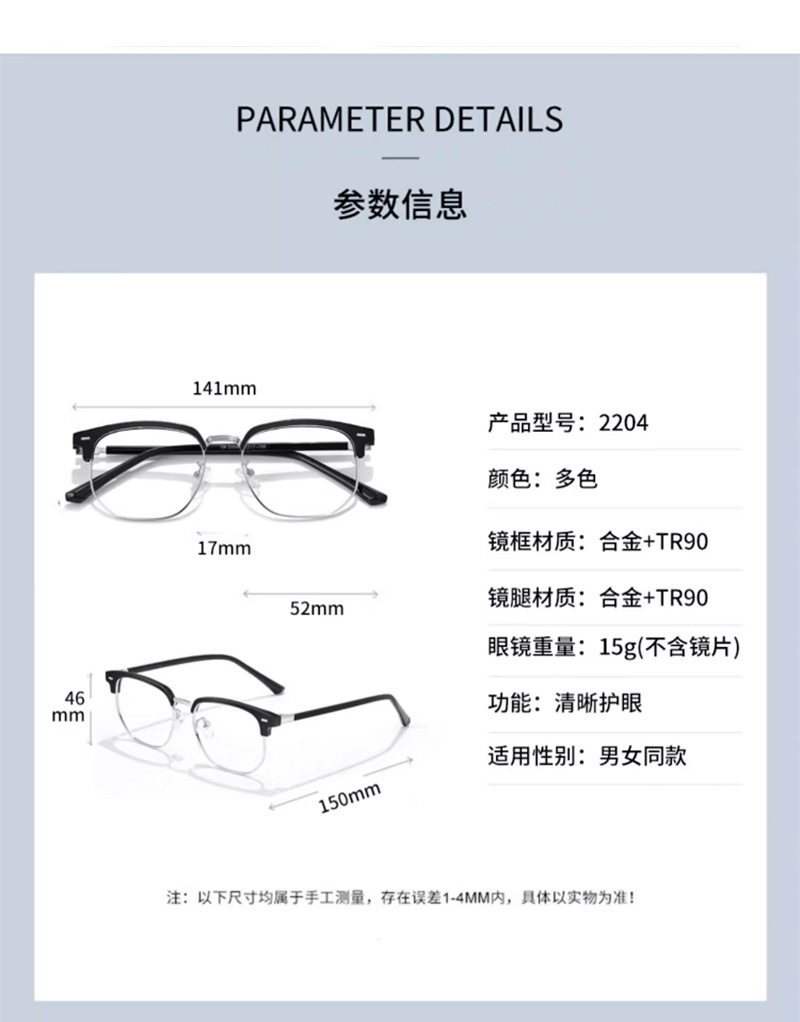 | Frame color | Bright black silver,Black gold,Black,Translucent gray silver,Sand black silver,Sand black,Black gun,[high quality] black silver,[high quality] black gold,[high quality] black,[high quality] translucent gray silver,[high quality] sand black silver |