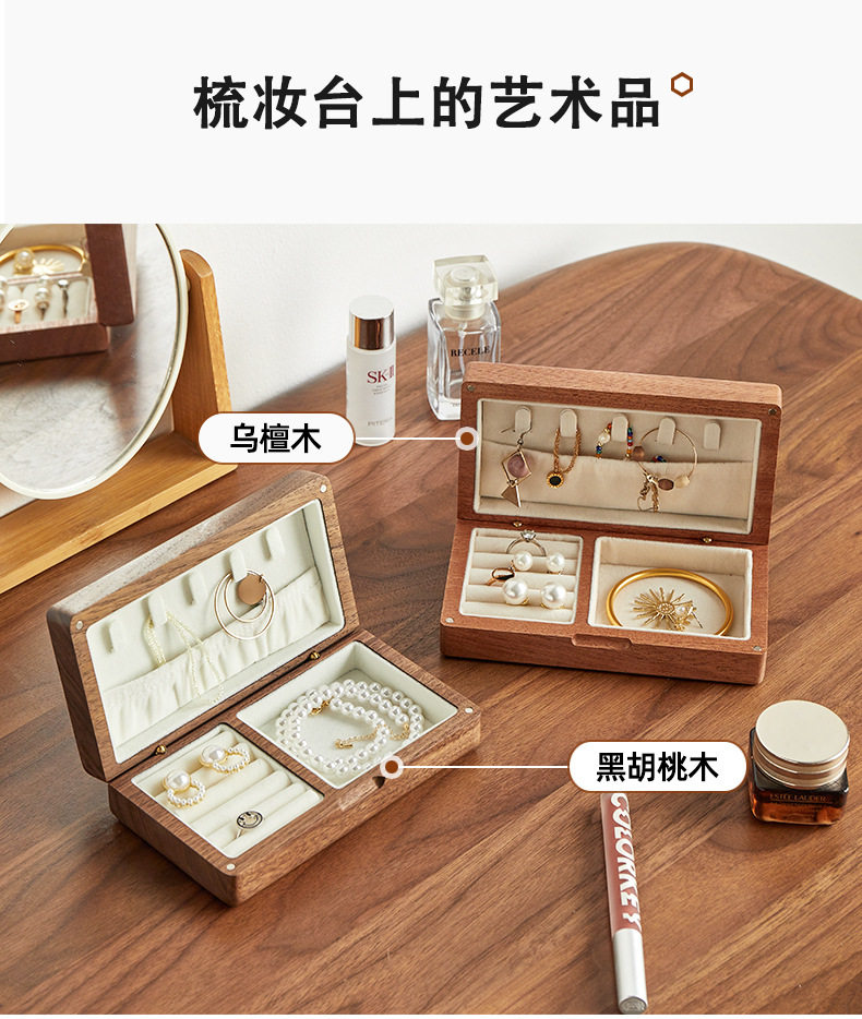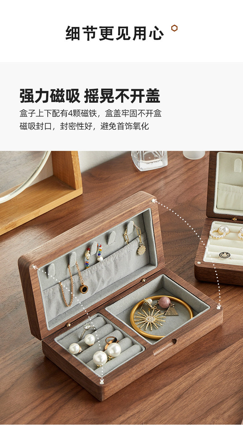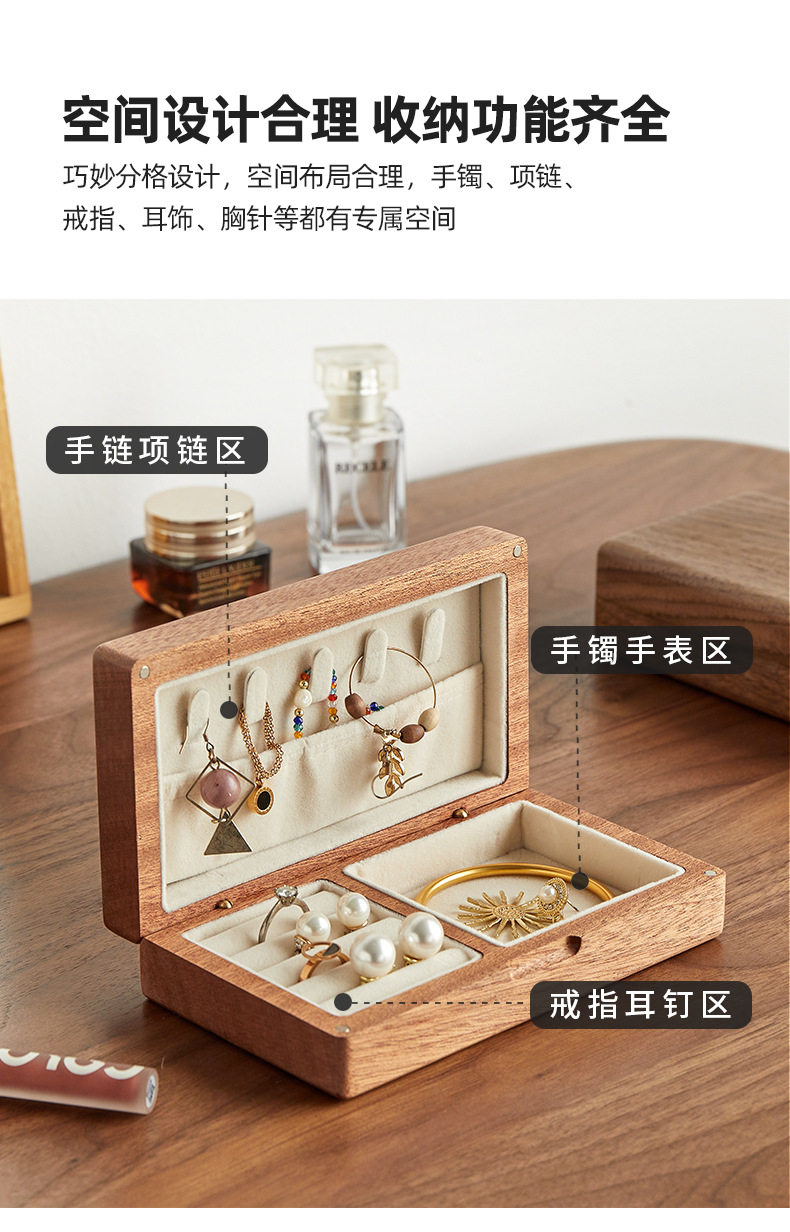 Black Walnut Solid Wood Jewelry Box Storage Box Exquisite High-end Jewelry Ring Earrings Gold Jewelry Jewelry Storage Box