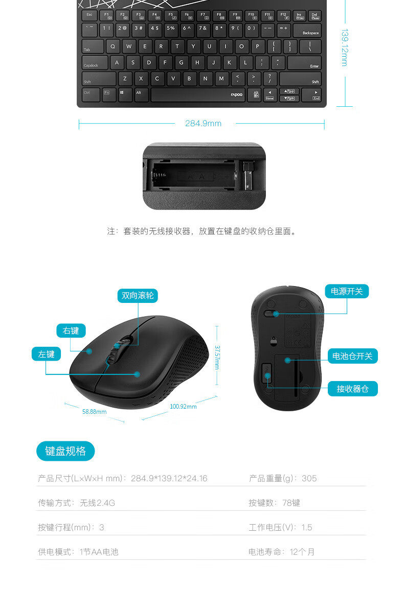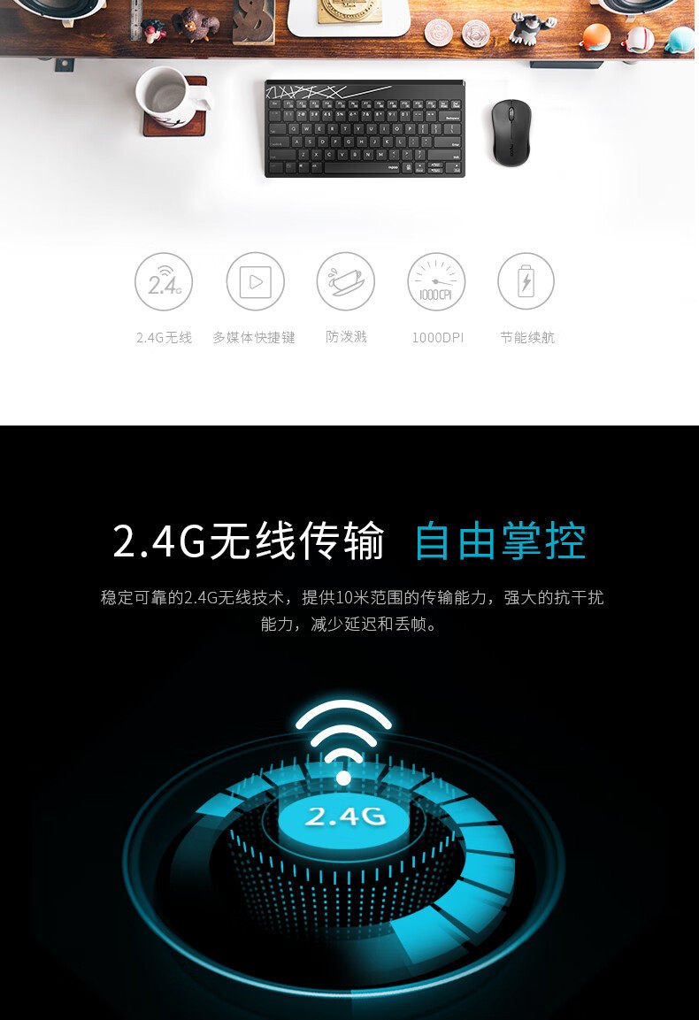 Rapoo 8000S/8000Gt Keyboard and Mouse Set Wireless Keyboard and Mouse Set Office Keyboard and Mouse Set