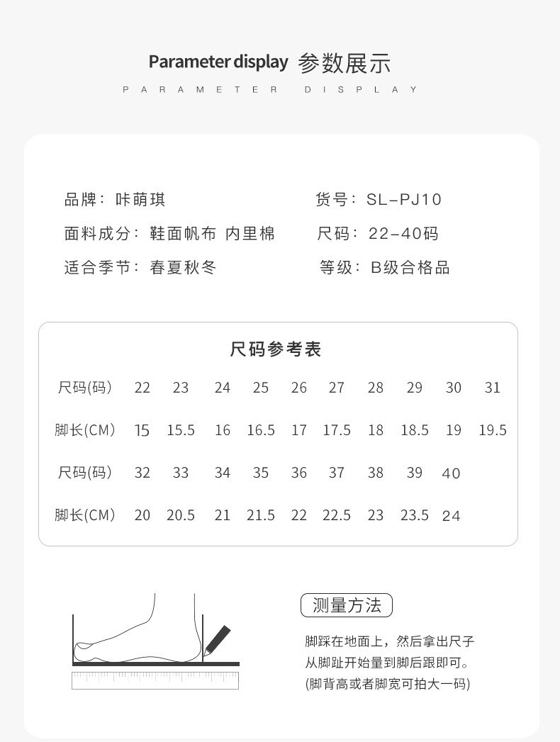 | Size | 22 (foot length 15cm),23 (foot length 15.5cm),24 (foot length 16cm),25 (foot length 16.5cm),26 (foot length 17cm),27 (foot length 17.5cm),28 (foot length 18cm),29 (foot length 18.5cm),30 (foot length 19cm),31 (foot length 19.5cm),32 (foot length 20cm),33 (foot length 20.5cm),34 (foot length 21cm),35 (foot length 21.5cm),36 (foot length 22cm),37 (foot length 22.5cm),38 (foot length 23cm),39 (foot length 23.5cm),40 (foot length 24cm) |
