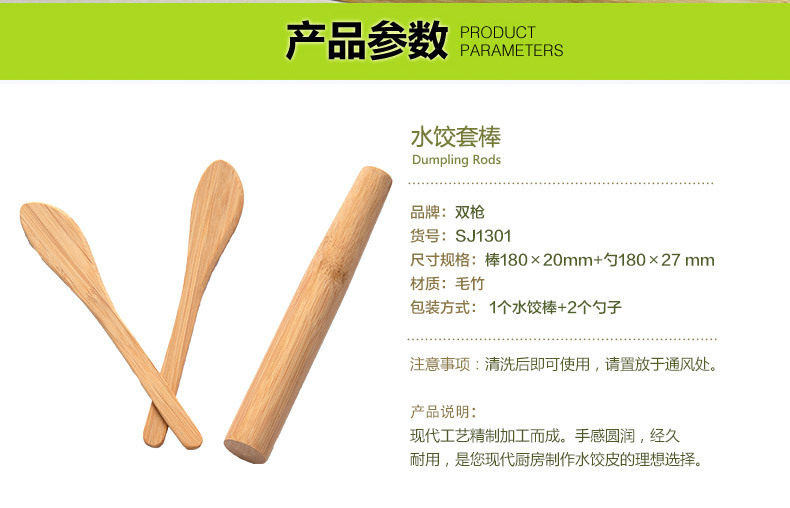 Double Gun Kitchen Household Rolling Pin Bamboo Dumpling Set Stick Dumpling Stick Set Package Dumpling Spoon Stuffing Spoon Making Tools