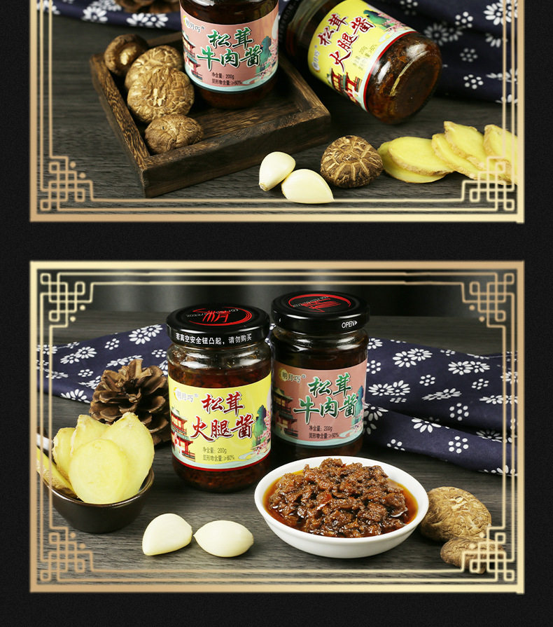 | Packaging specifications | 1 bottle of matsutake beef sauce,1 bottle of matsutake ham sauce,1 bottle of matsutake beef sauce + 1 bottle of matsutake ham sauce,2 bottles of matsutake beef sauce + 2 bottles of matsutake ham sauce,3 bottles of matsutake beef sauce + 3 bottles of matsutake ham sauce,4 bottles of matsutake beef sauce + 4 bottles of matsutake ham sauce |