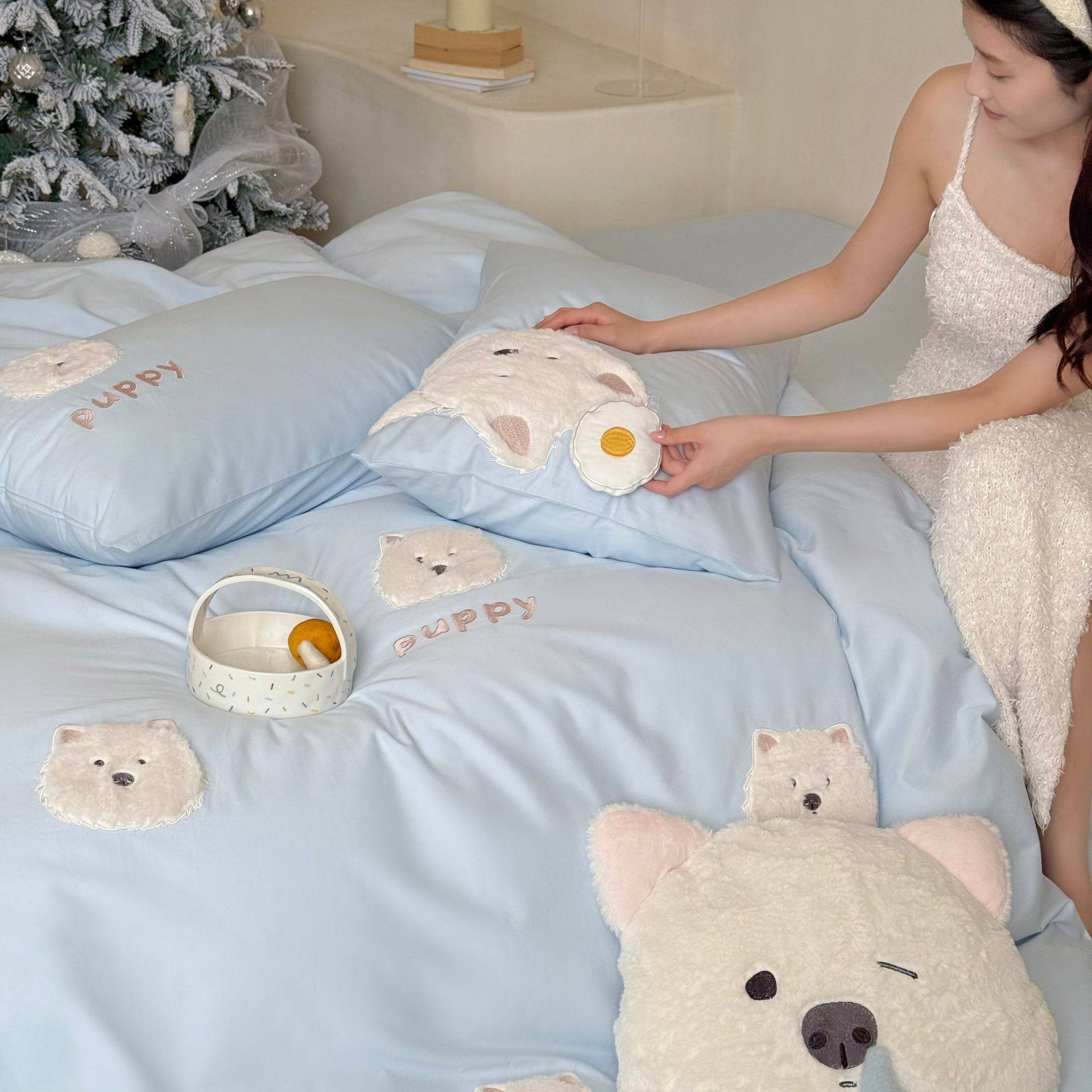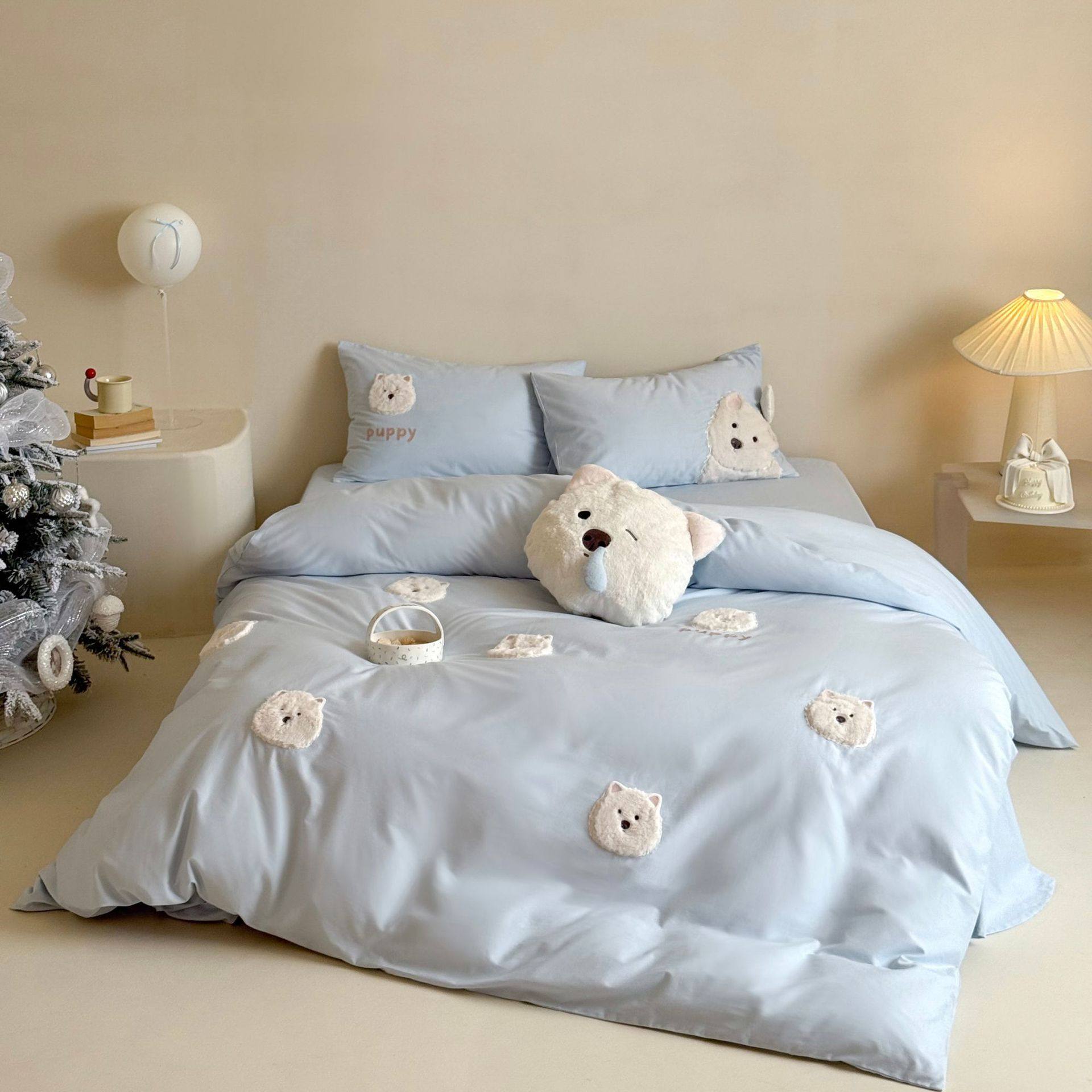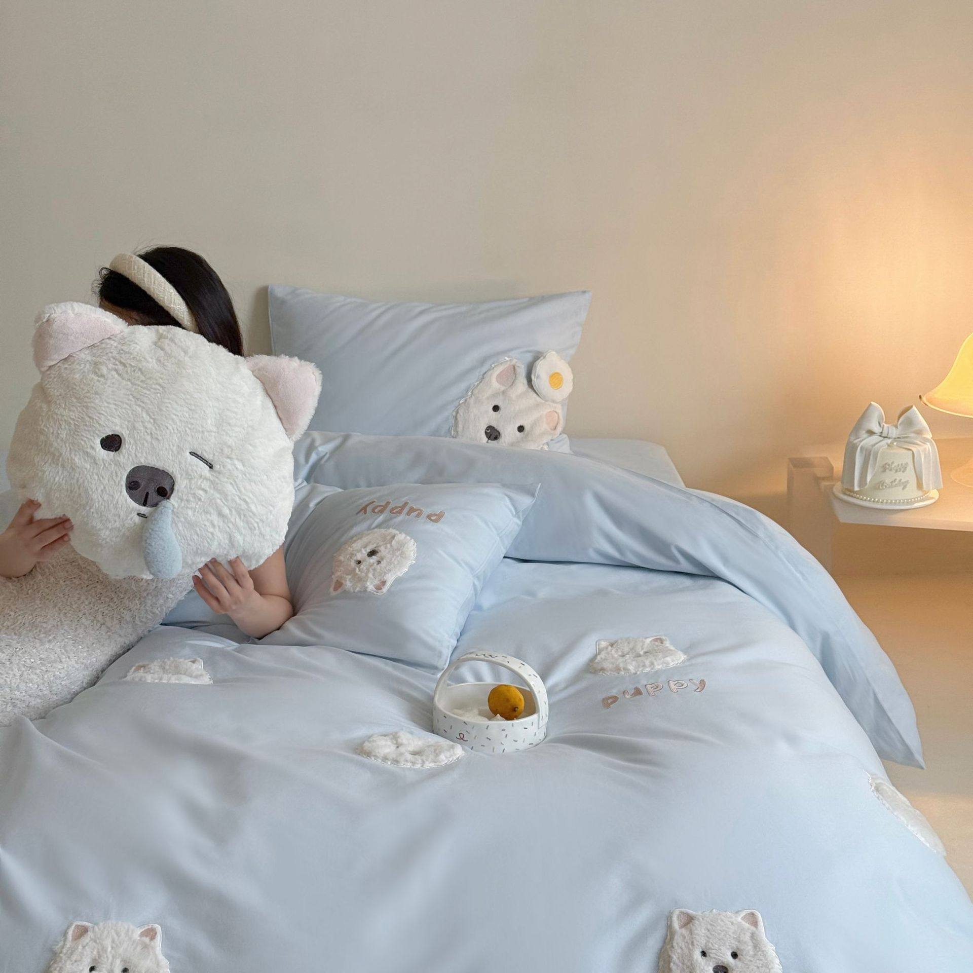 Cartoon 100S Thickened Brushed Cotton Four-Piece Set Pure Cotton Embroidered Duvet Cover Bed Sheet Fitted Sheet Children's Bedding Three-Piece Set