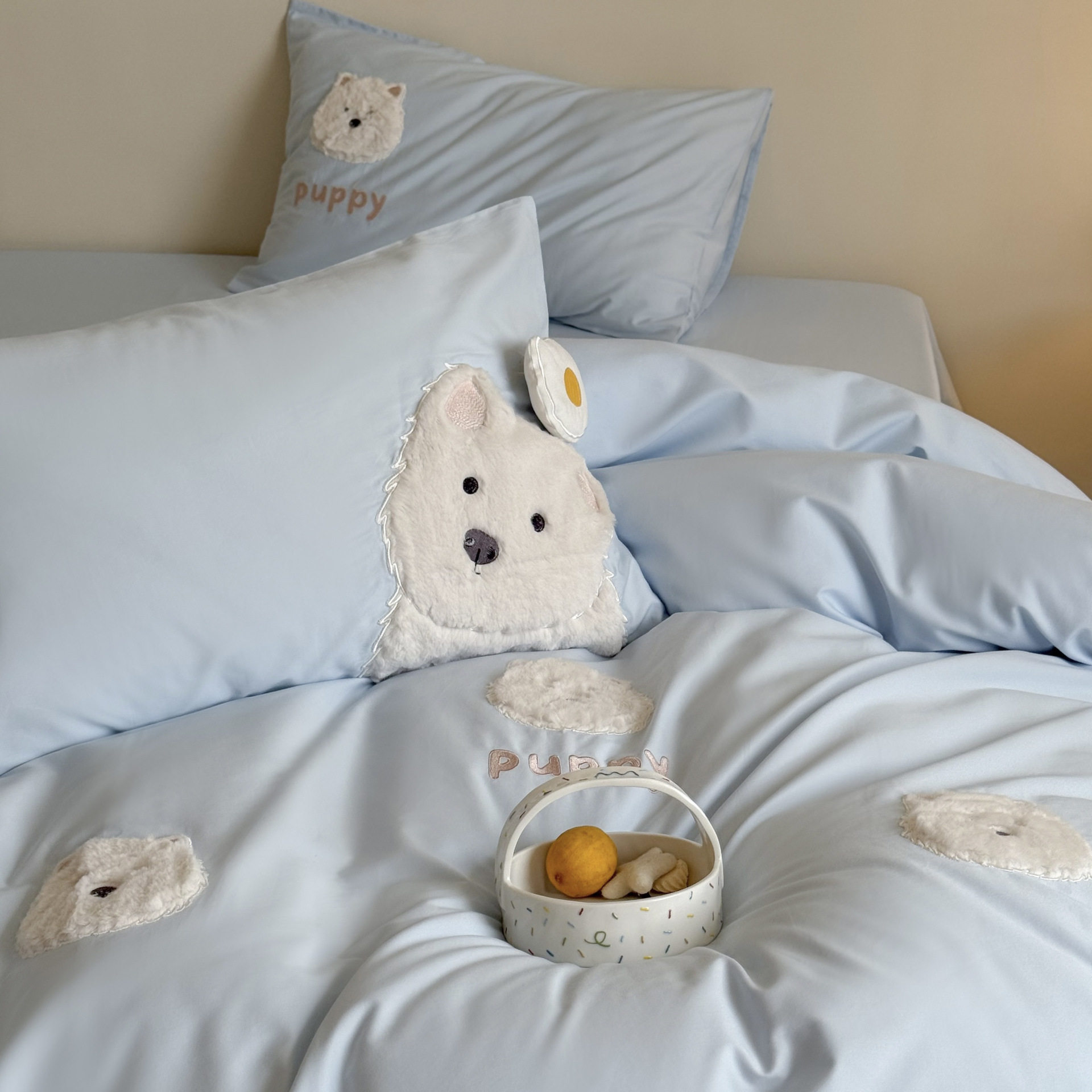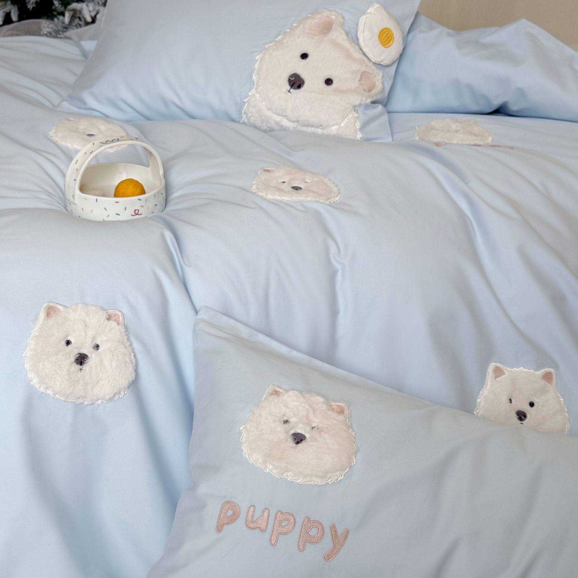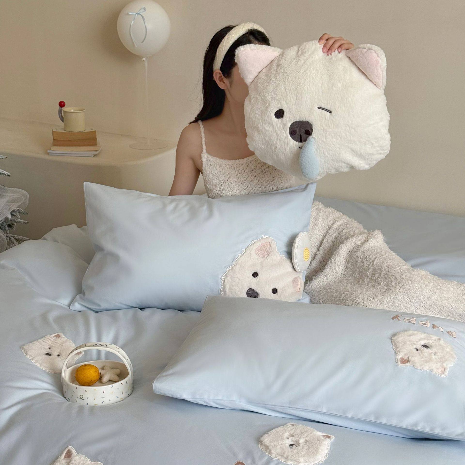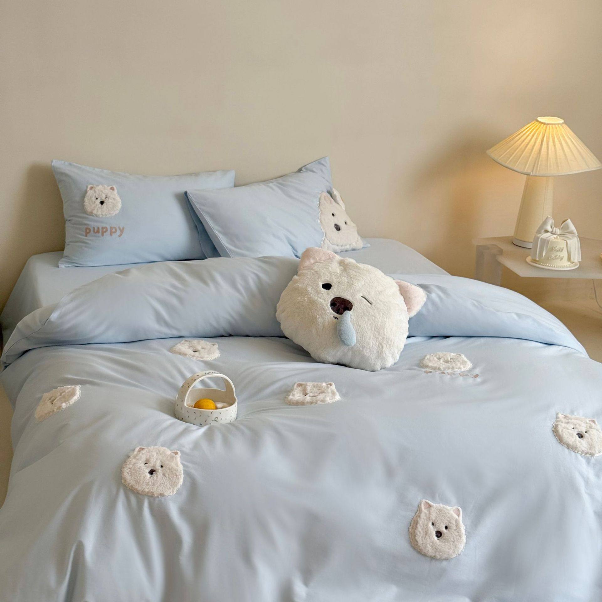 Cartoon 100S Thickened Brushed Cotton Four-Piece Set Pure Cotton Embroidered Duvet Cover Bed Sheet Fitted Sheet Children's Bedding Three-Piece Set