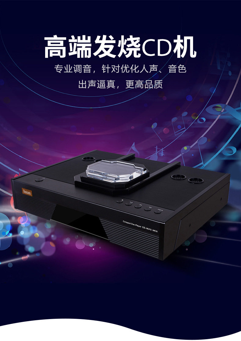 Pure Sound Cd-Mu13 Pro Audiophile Tube Cd Player with Top Push Cover, Balanced Output, and Usb/Bluetooth Input Decoding