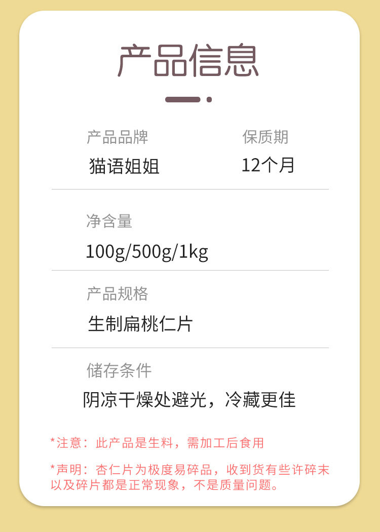 | Packaging specifications | 100g almond tablets,Almond tablets 500g,Almond tablets 1kg |
