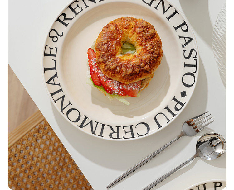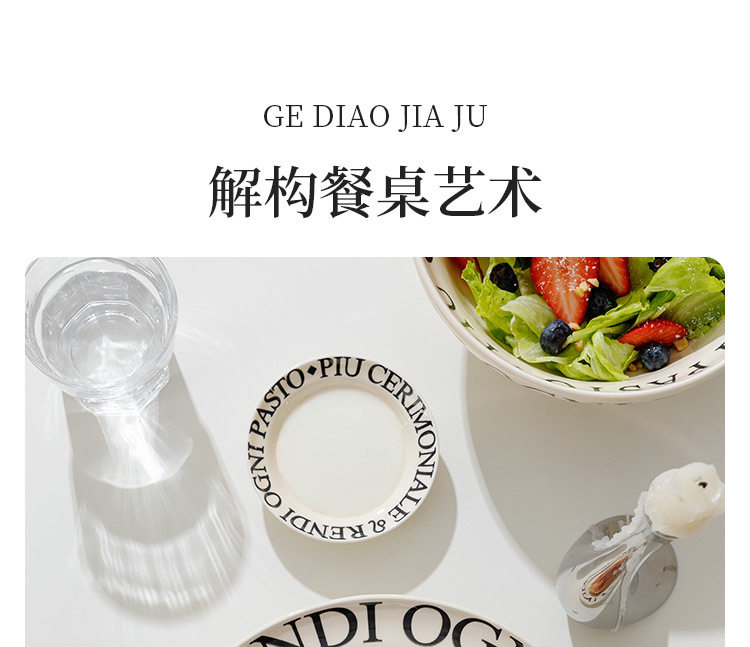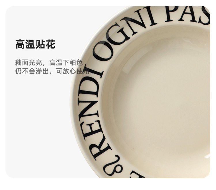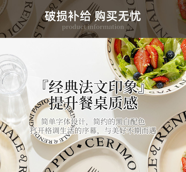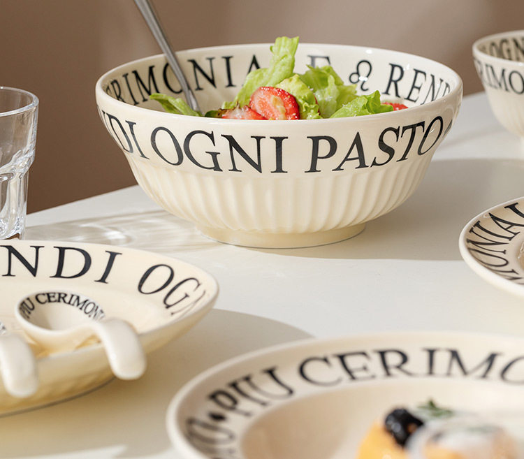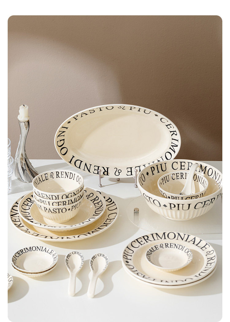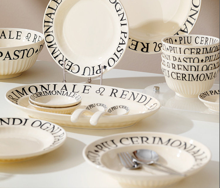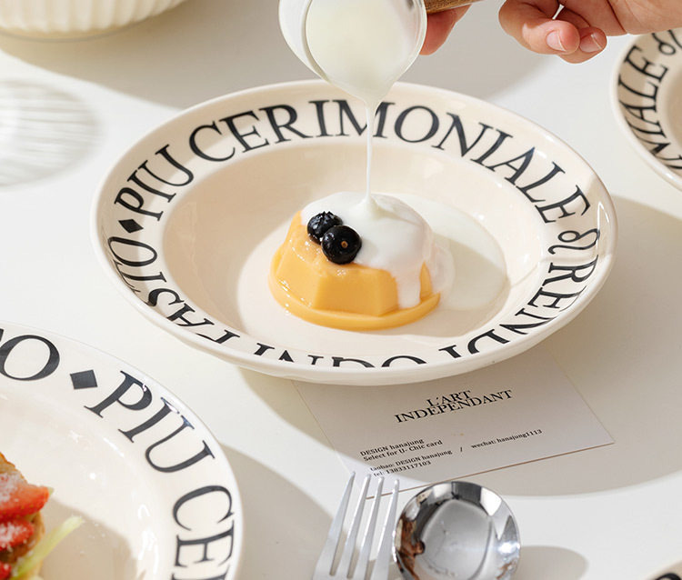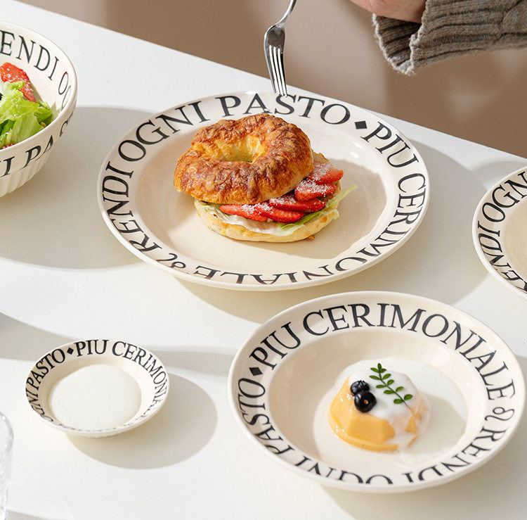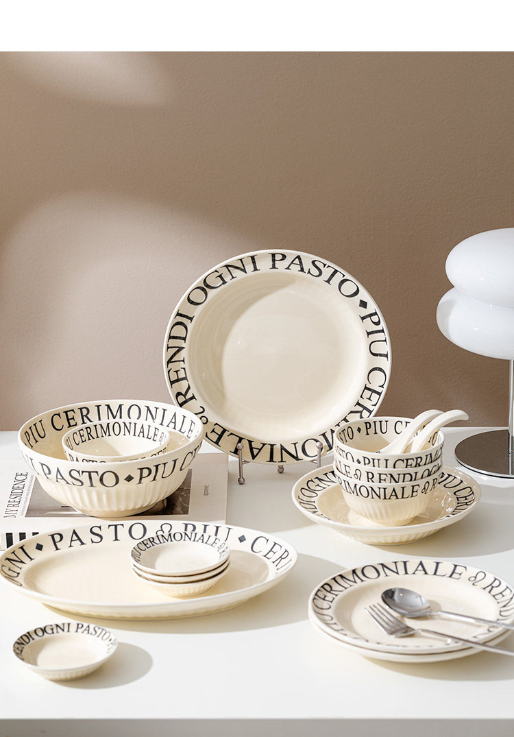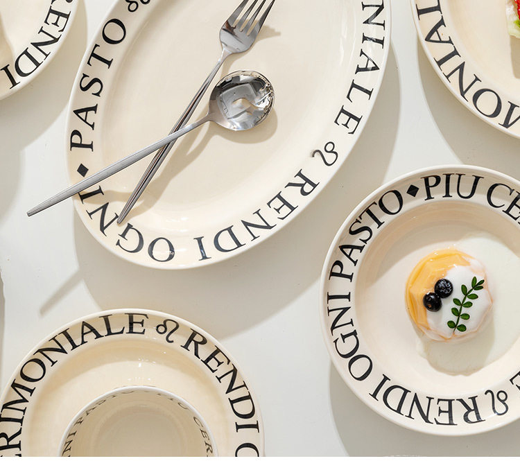 French Letter Ceramic Tableware Deep Plate Soup Bowl Rice Bowl Single High-End Plate Dish Plate Household Dish Set