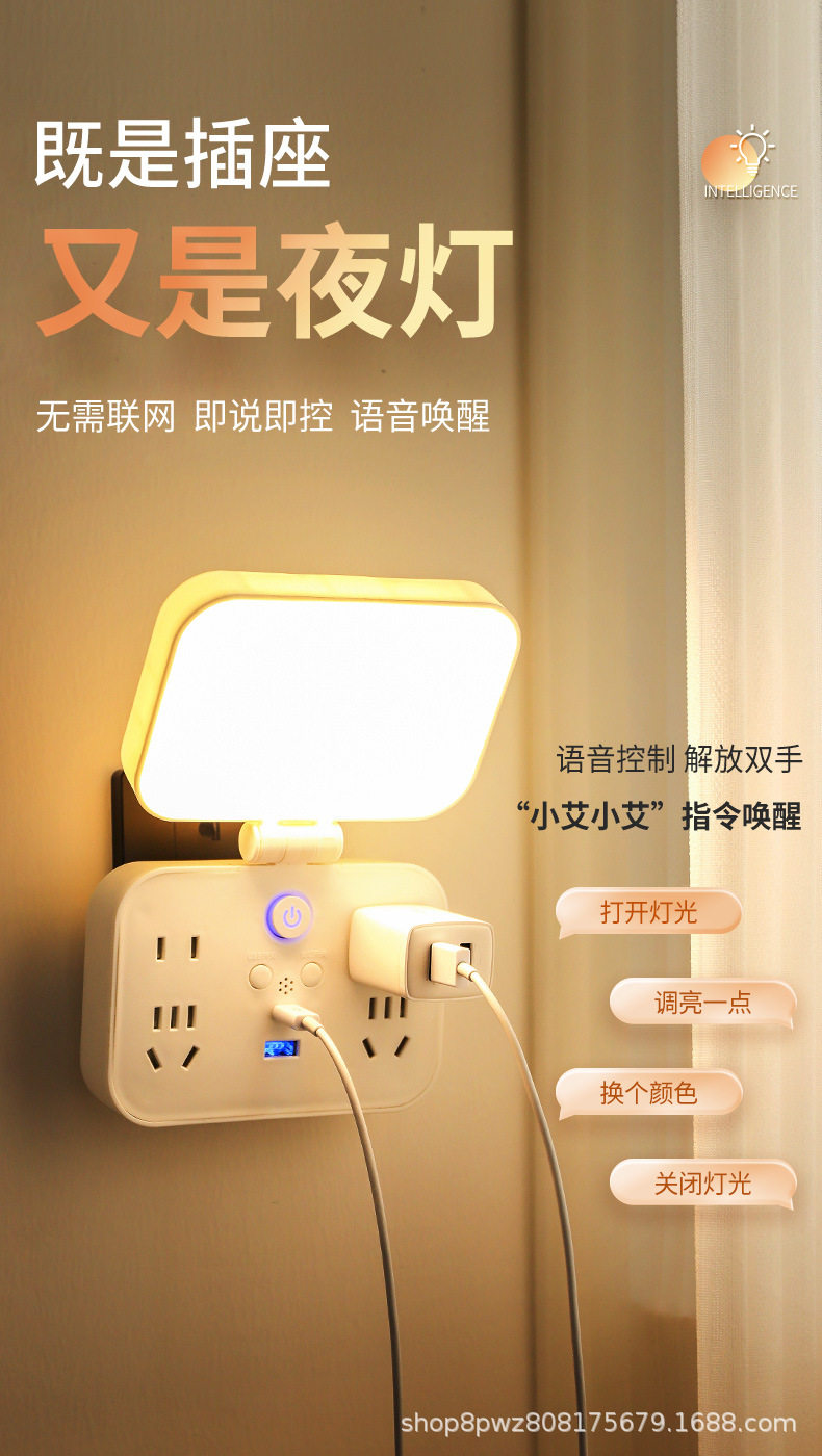 Intelligent voice socket desk lamp board with USB night light dormitory office bedside nursing sleep baby eye protection lamp