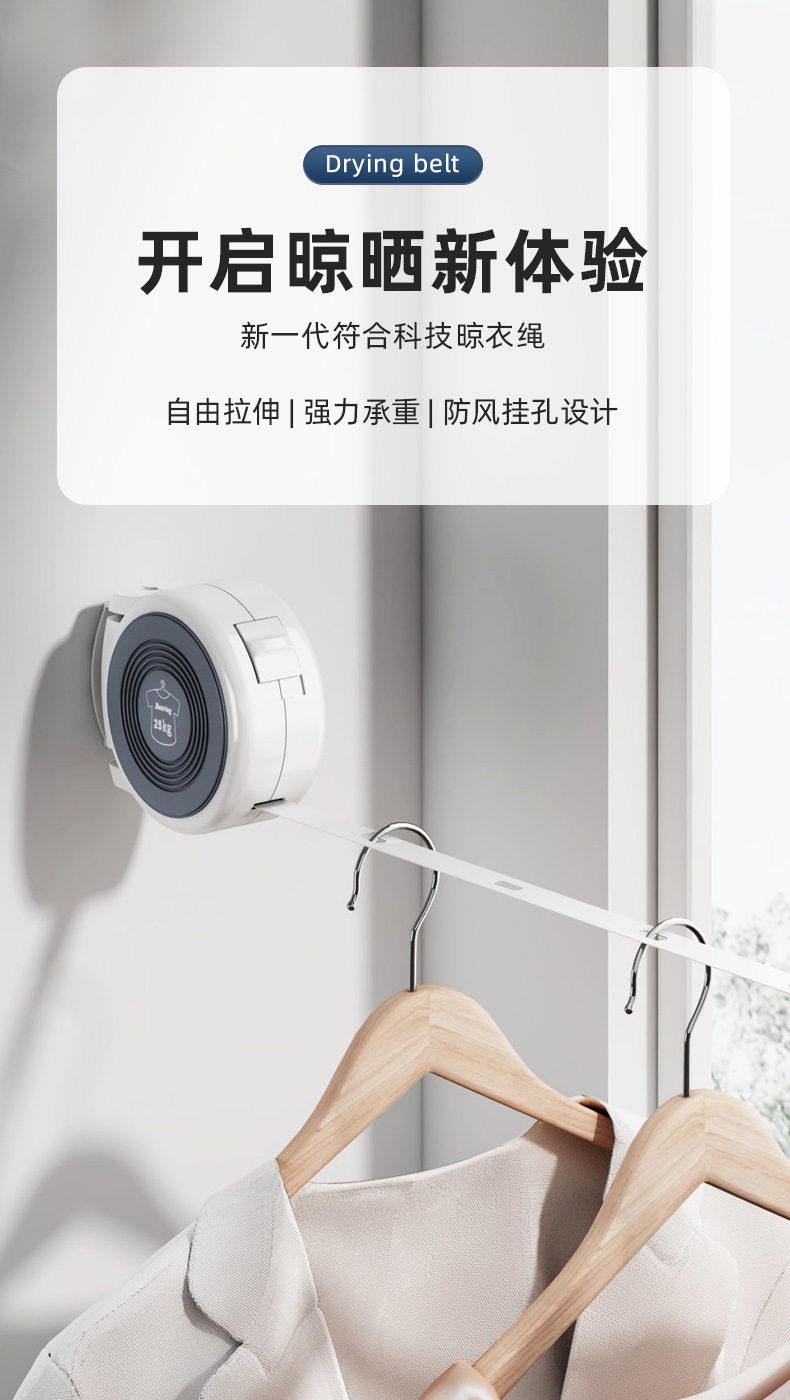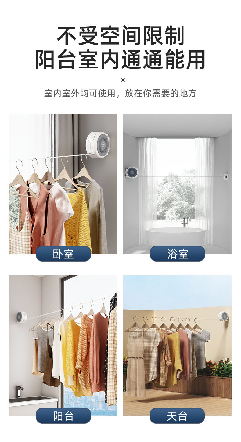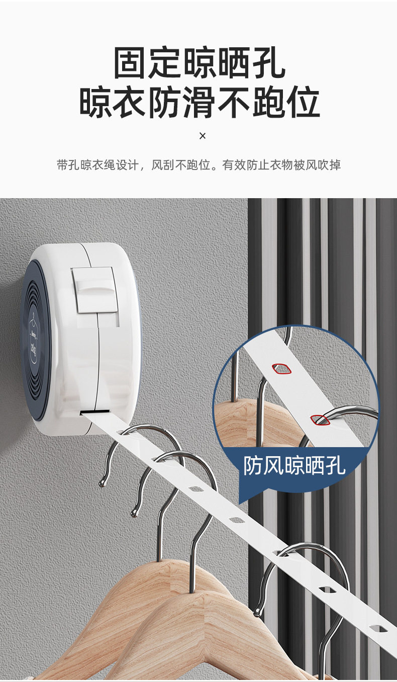 Invisible Clothesline Indoor Balcony Outdoor Household Bathroom Toilet Rotating Retractable Clothes Drying Belt with Holes