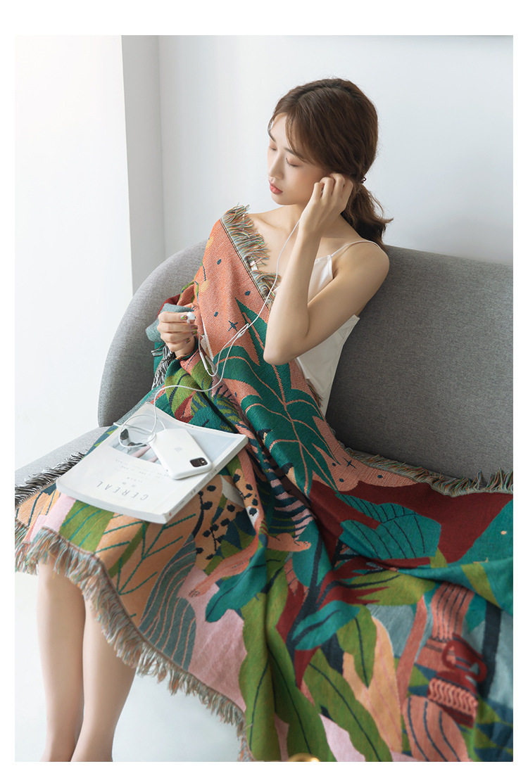 Dream Forest Polyester Cotton Sofa Cover Towel Four Seasons Universal Anti-cat Scratch Line Blanket Living Room Decorative Tapestry Original Fabric
