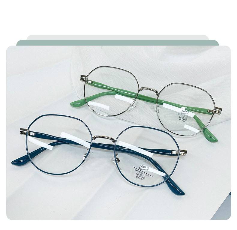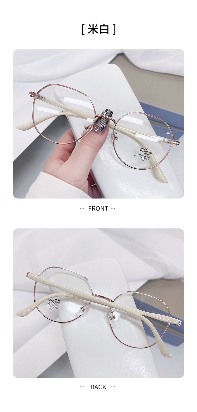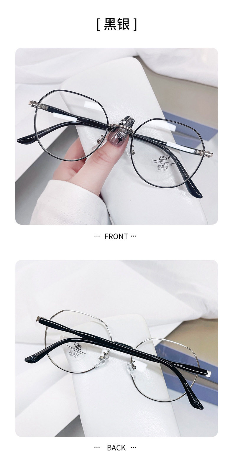 New Style Metal Anti-Blue Light Myopia Glasses Fashionable Retro Round Glasses Frame Women's Ins Simple Lightweight Flat Glasses