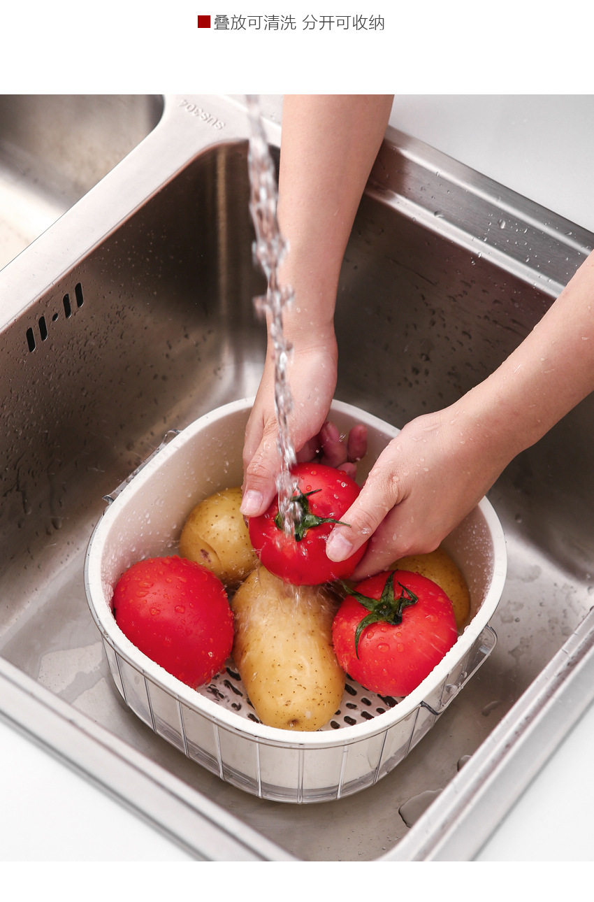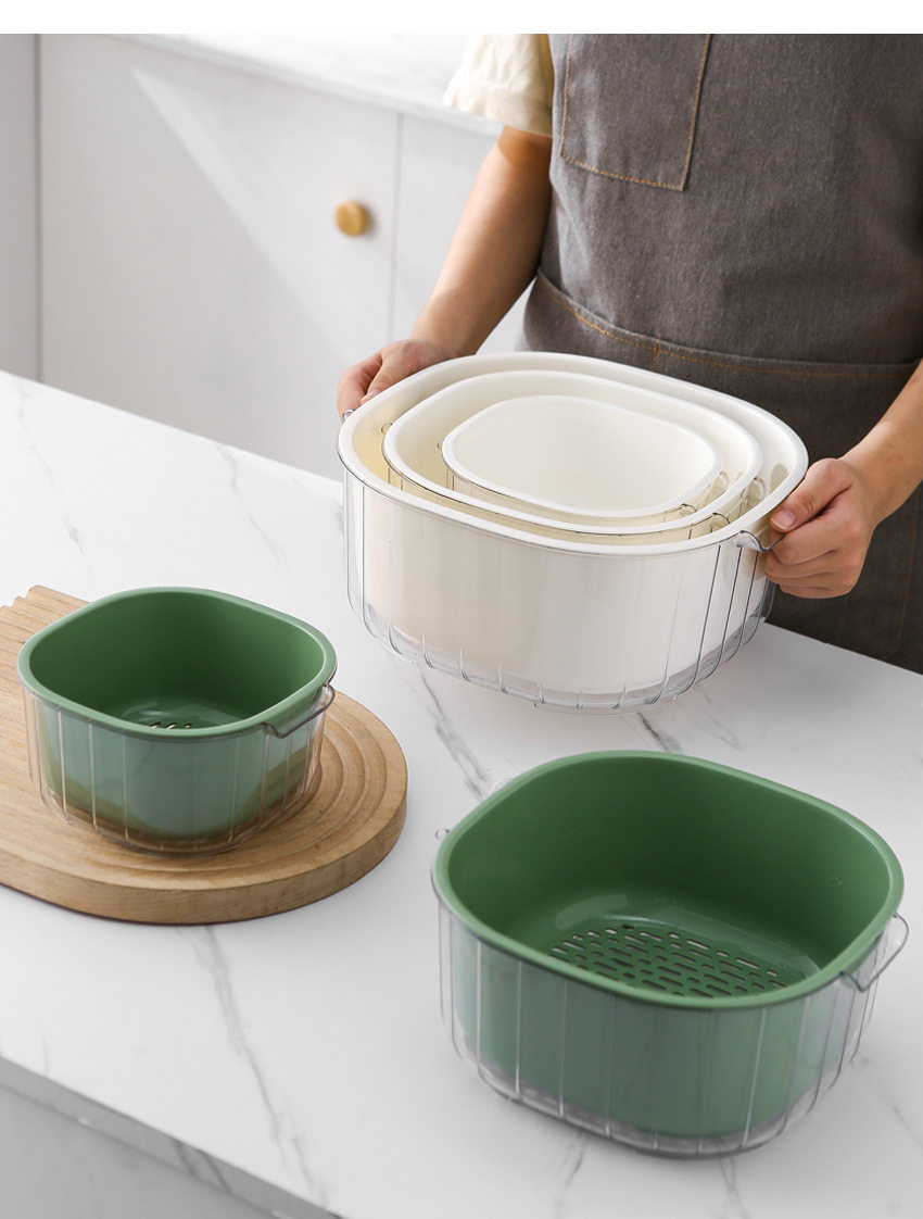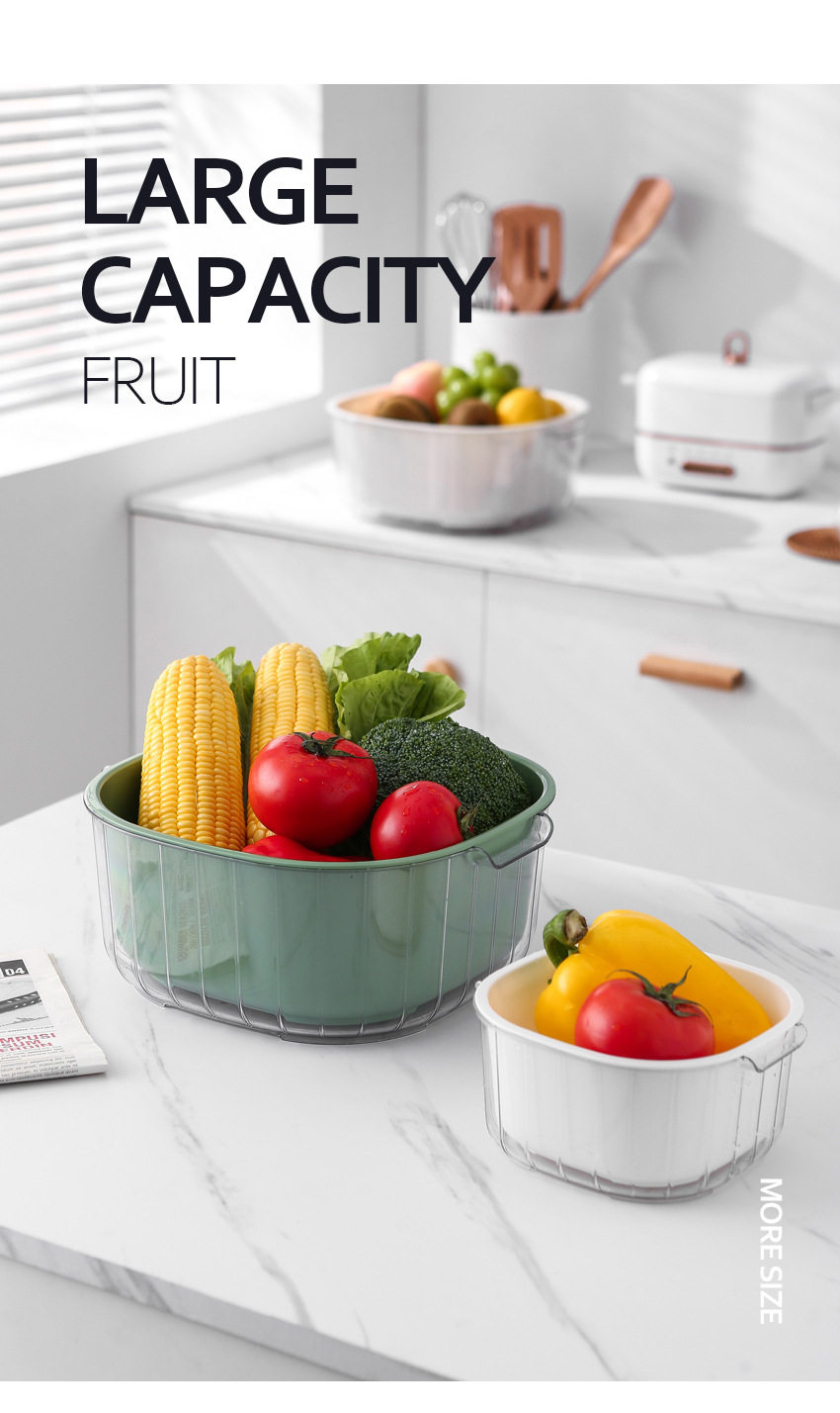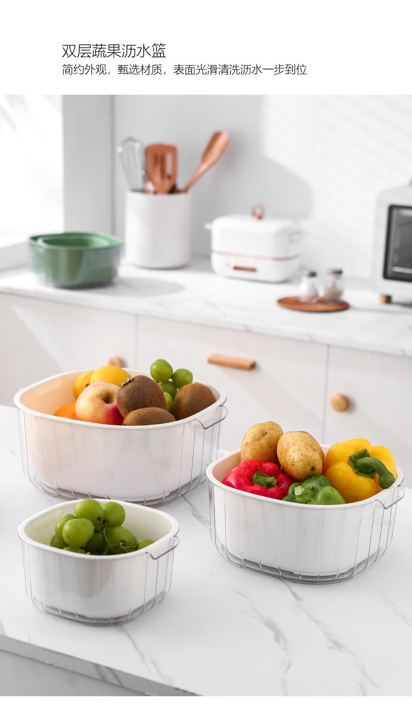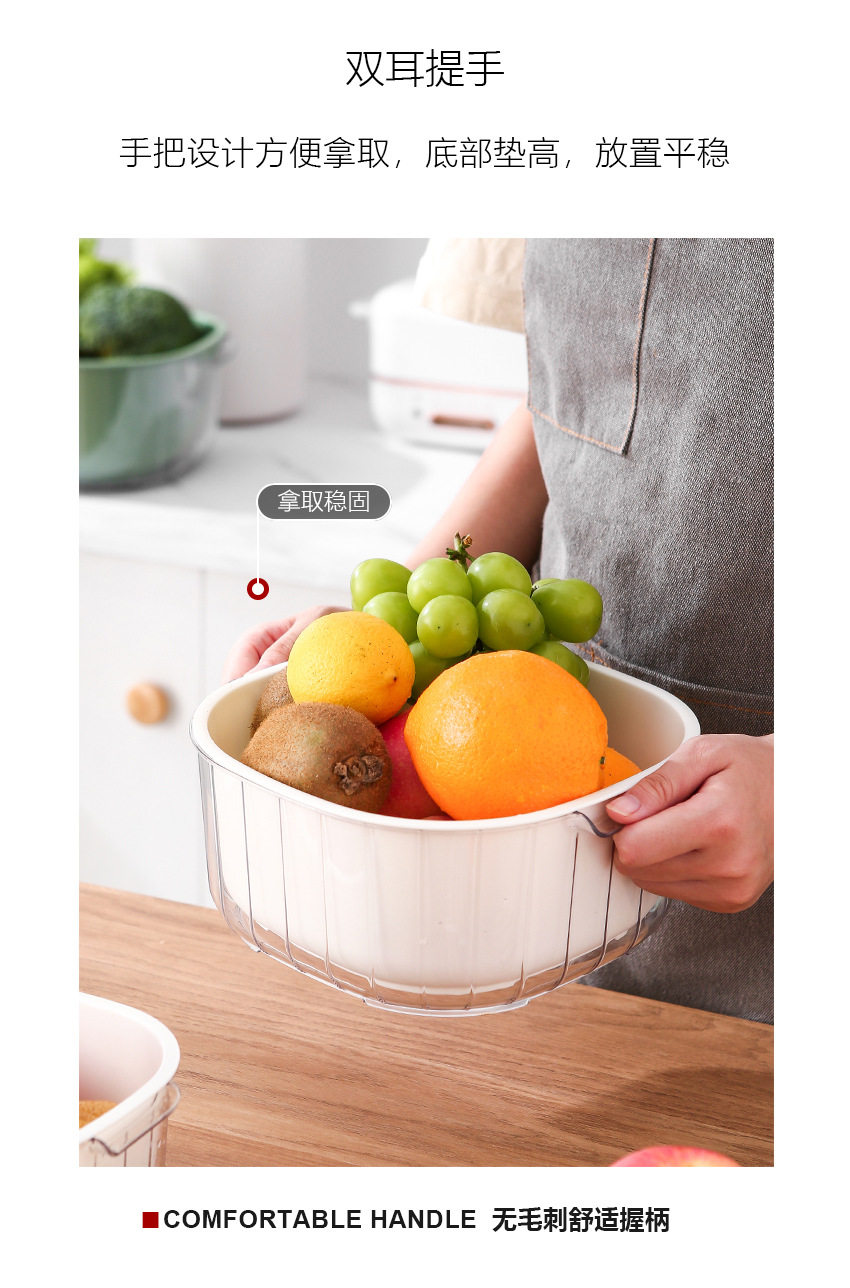 Internet Celebrity Double Layer Vegetable and Fruit Draining Basket Kitchen Fruit and Vegetable Washing Basket Binaural Handle Plastic Vegetable Washing Basin