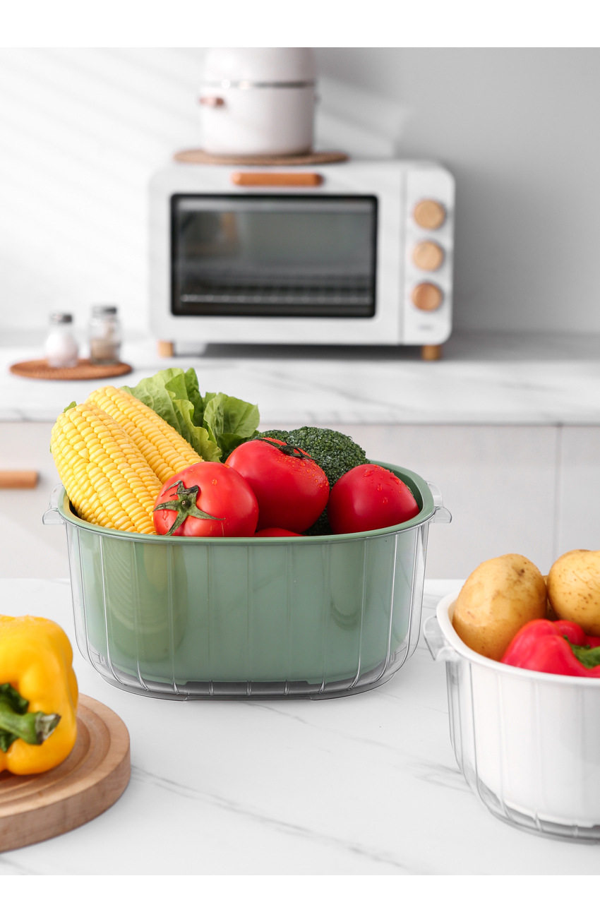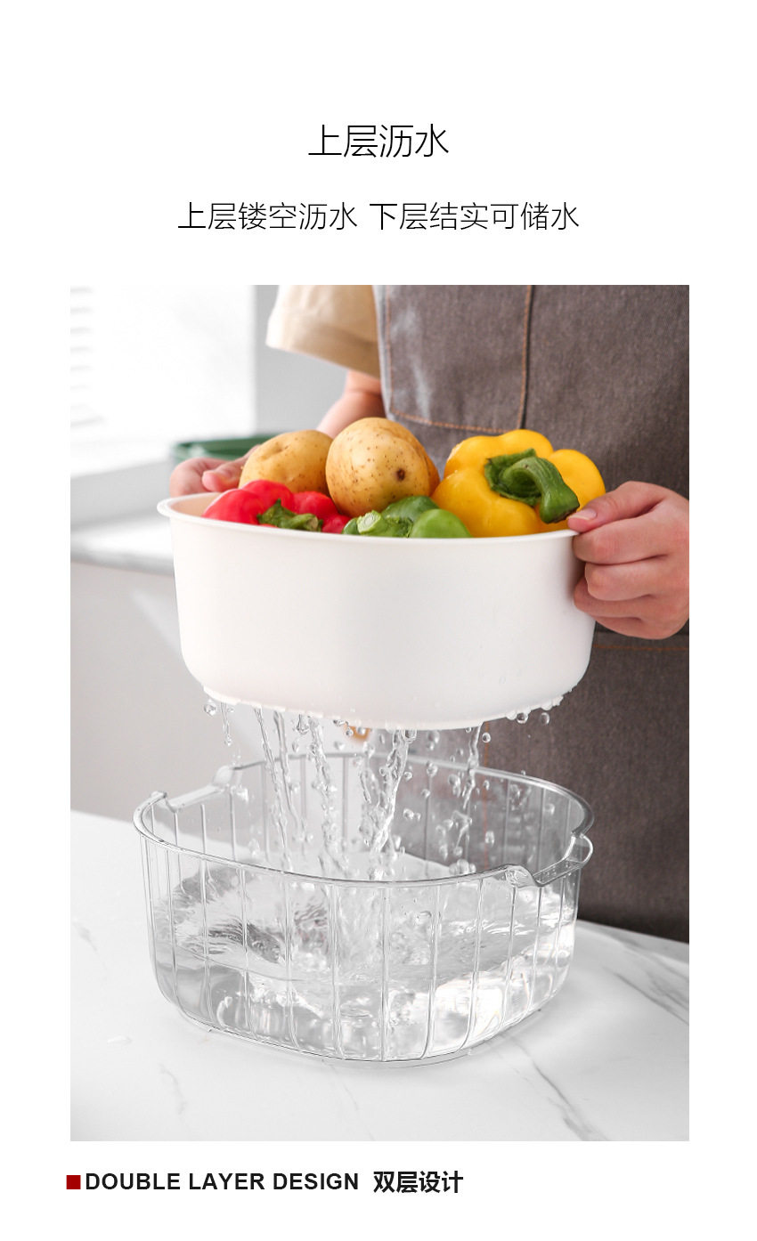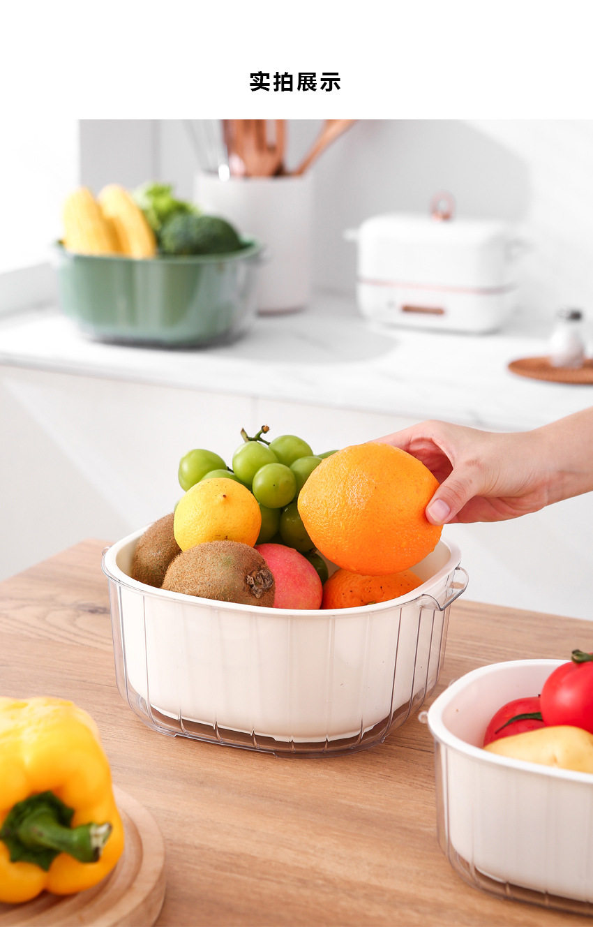 Internet Celebrity Double Layer Vegetable and Fruit Draining Basket Kitchen Fruit and Vegetable Washing Basket Binaural Handle Plastic Vegetable Washing Basin