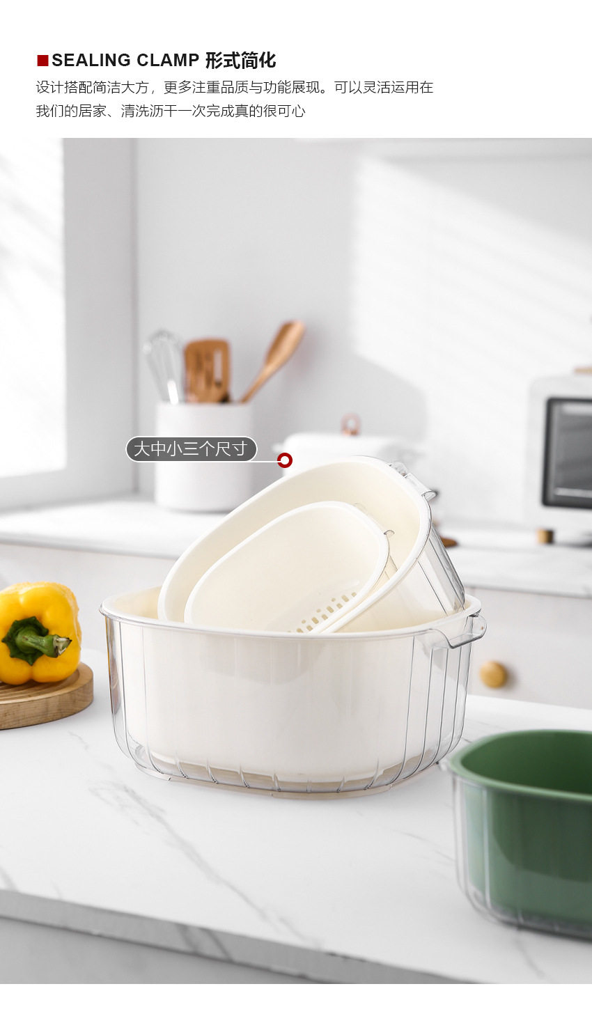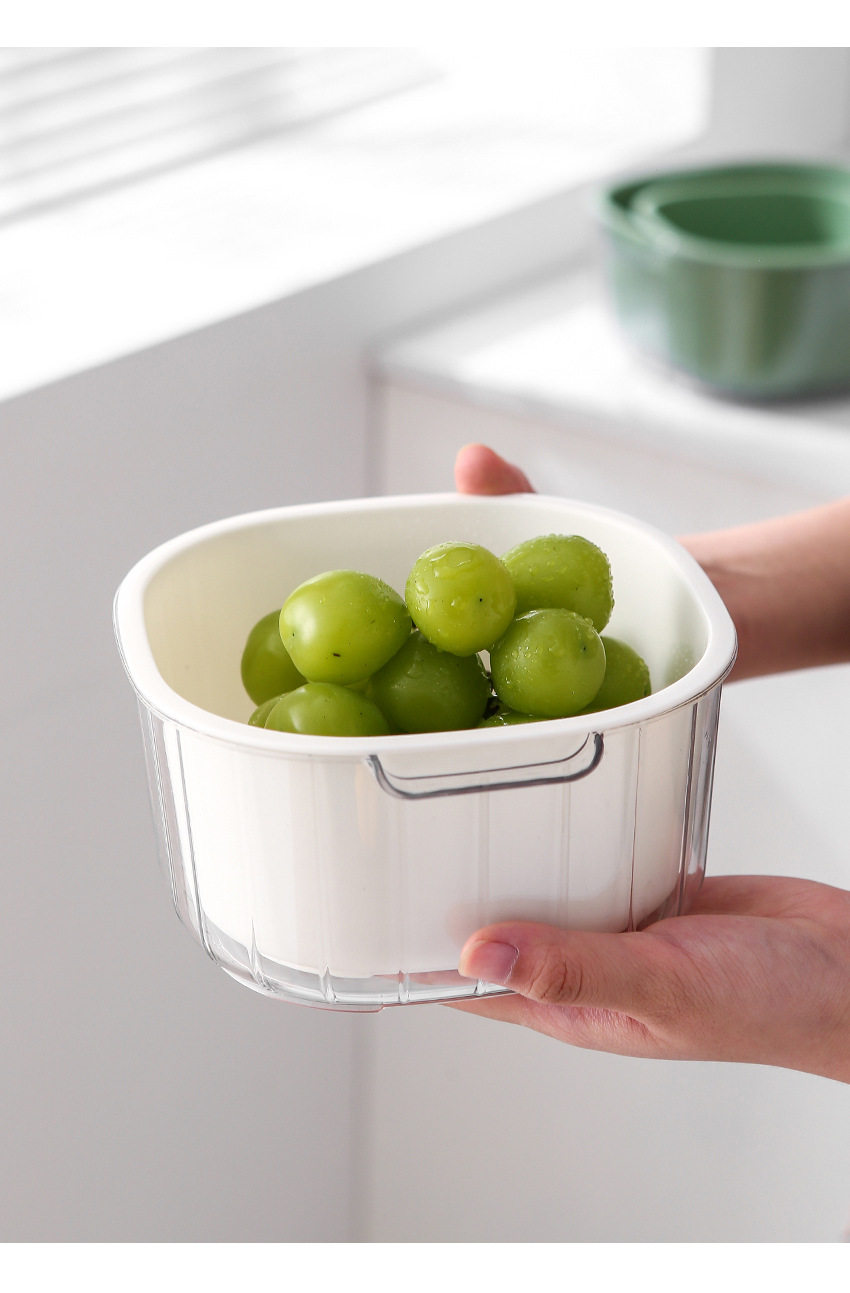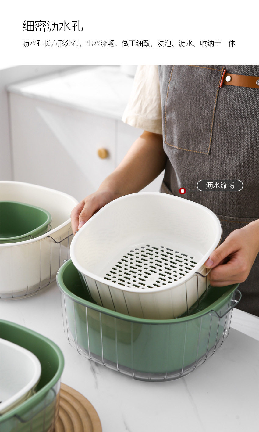 Internet Celebrity Double Layer Vegetable and Fruit Draining Basket Kitchen Fruit and Vegetable Washing Basket Binaural Handle Plastic Vegetable Washing Basin