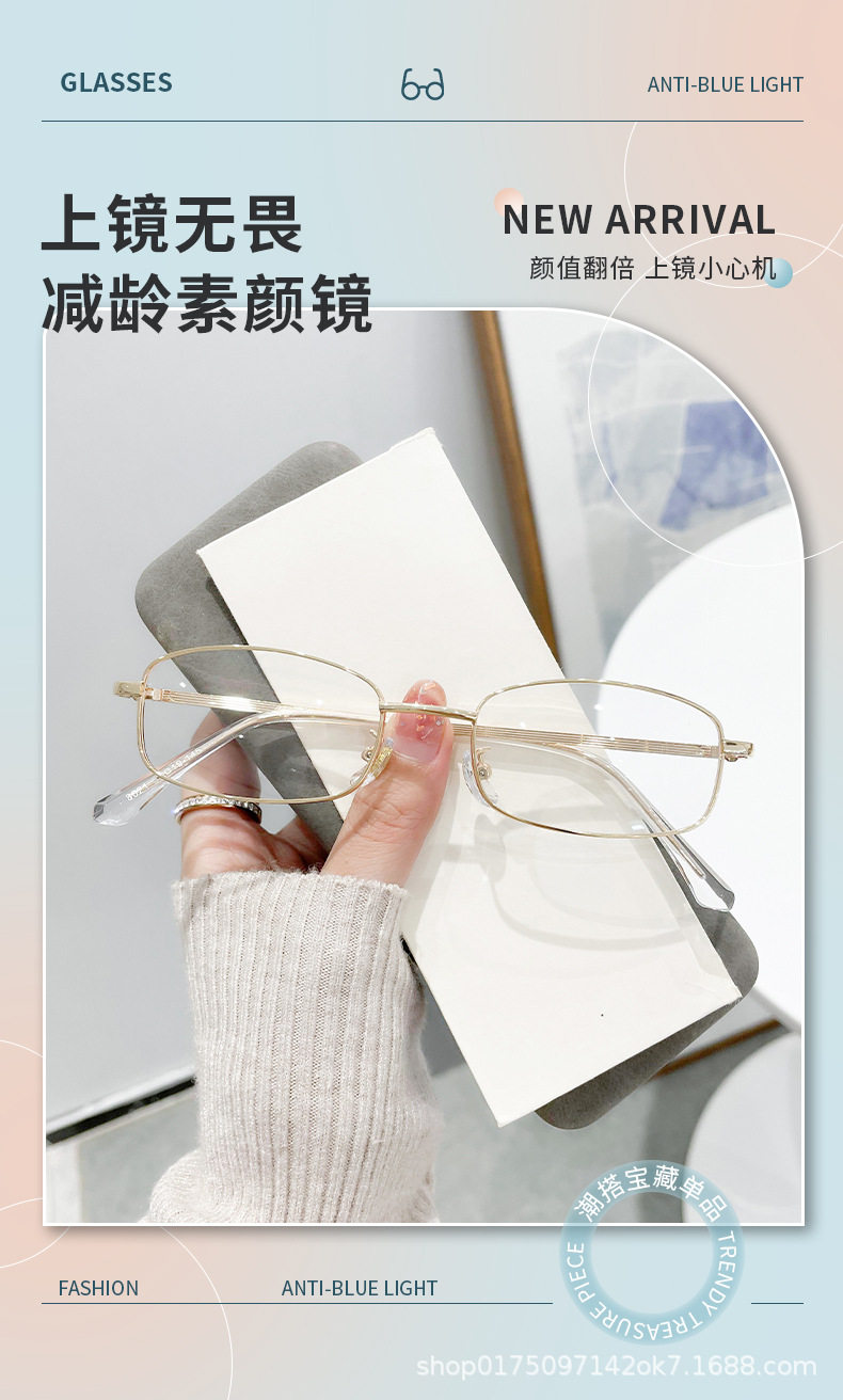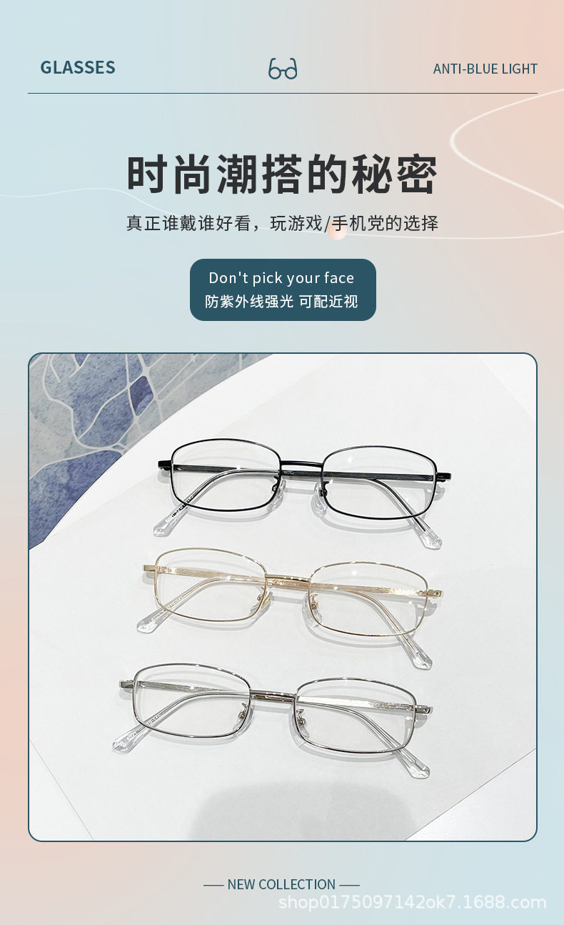 Rectangular Personalized Literary Metal Glasses Frame Rectangular Can Be Matched with Prescription for Men and Women Simple Without Pinching the Face 8021