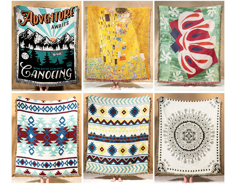 Modern Simple Oil Painting Decorative Blanket Jacquard Tapestries Outdoor Camping Blanket Universal Sofa Towel Sofa Blanket Carpet Tablecloth
