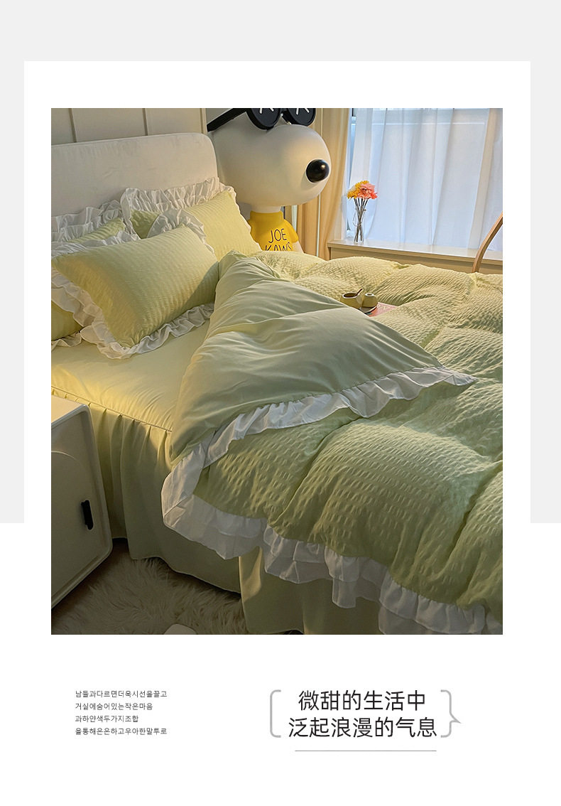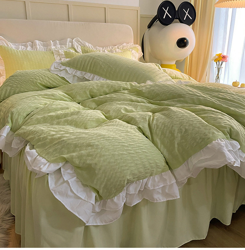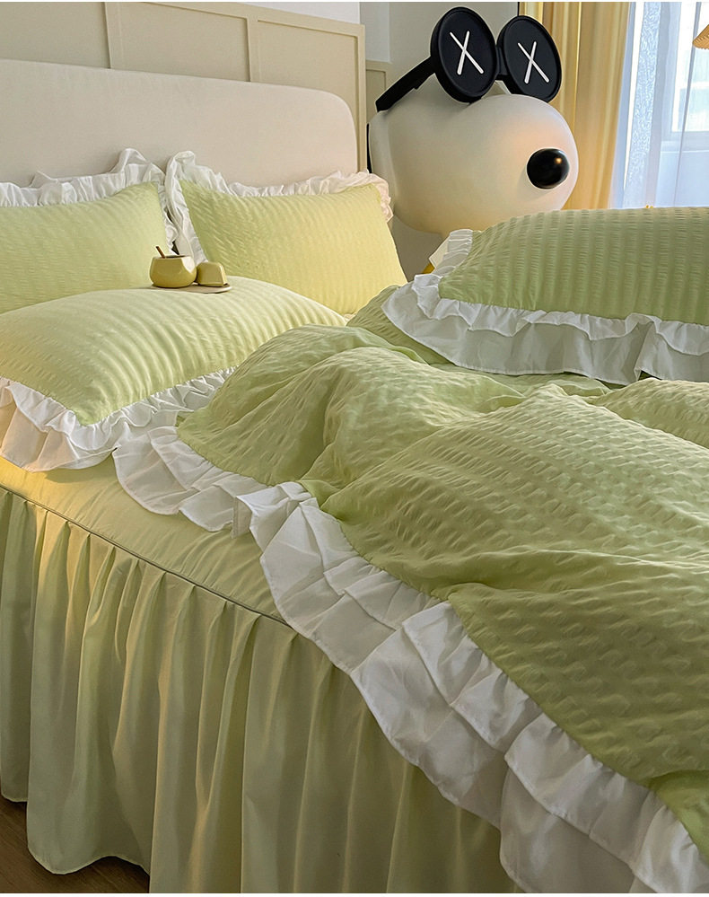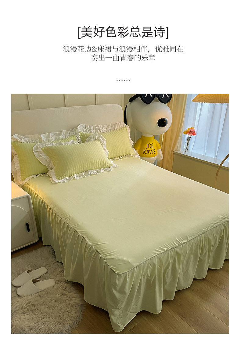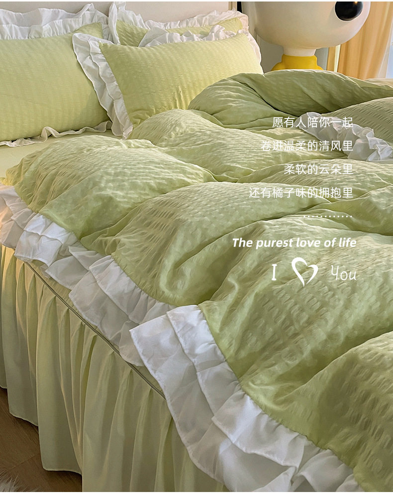 Korean version of ins blogger with ball ball four-piece set solid color wash cotton bed skirt quilt cover Princess wind dormitory three four-piece set