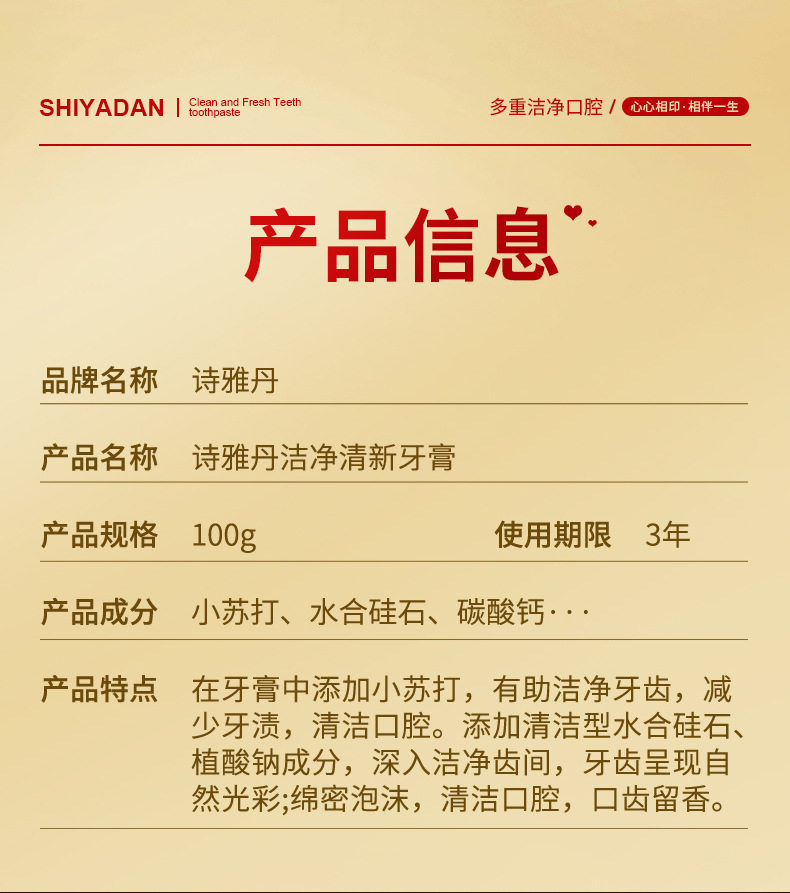 | Item number | Heart to heart, happy toothpaste for a lifetime |
