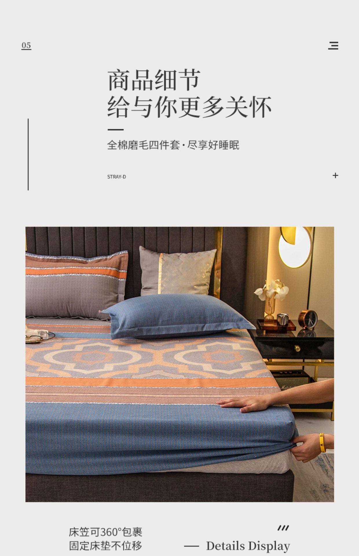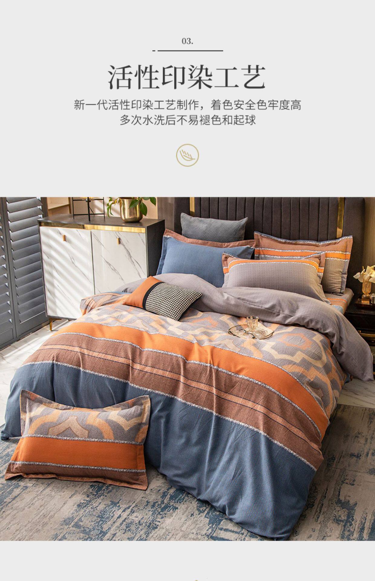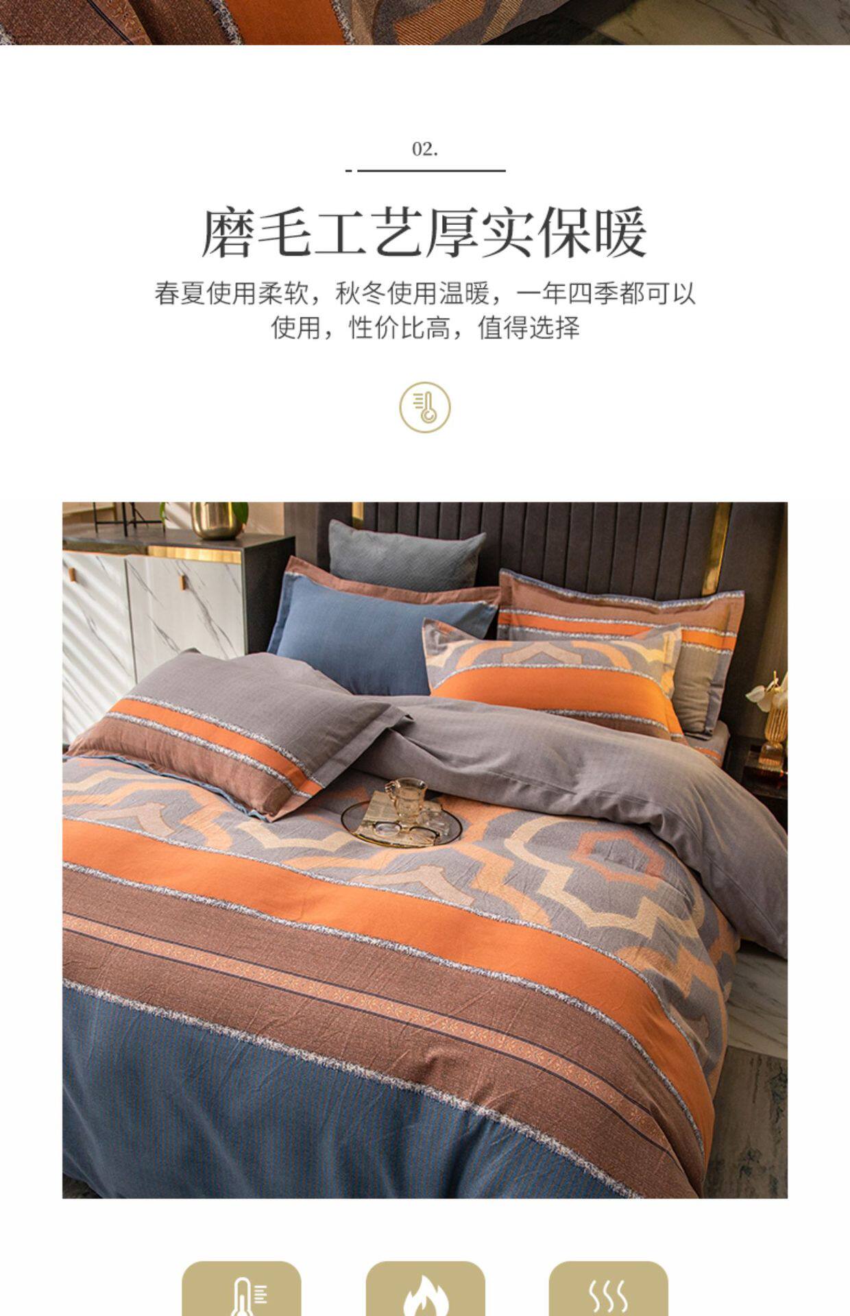 Sanding four-piece cotton 2022 new 100 cotton bedding thick quilt bedding three-piece set 4