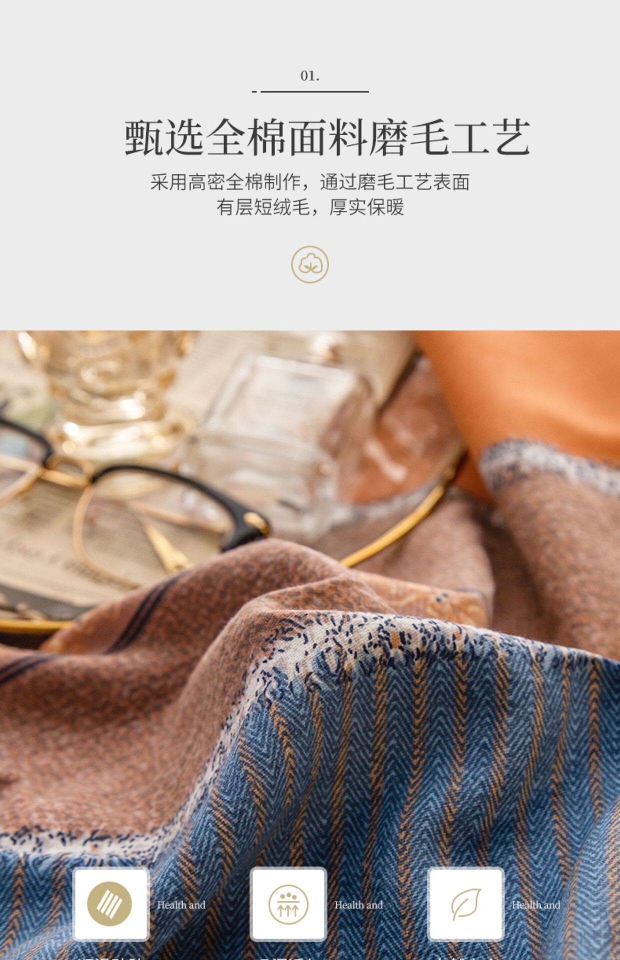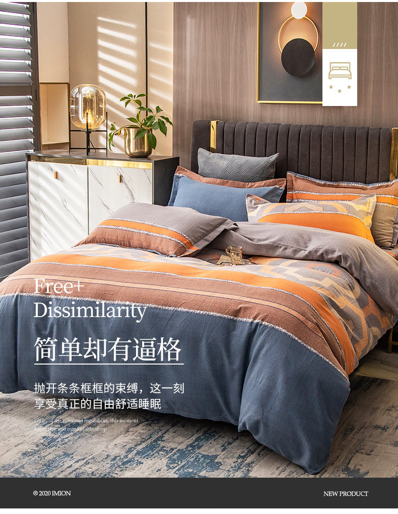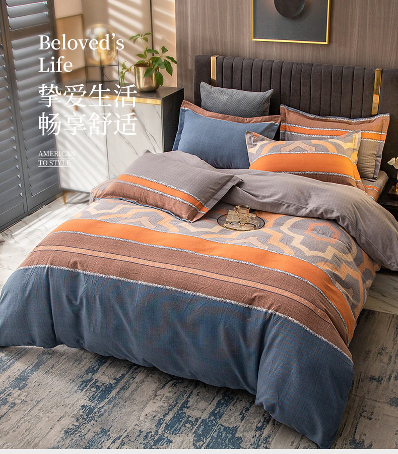 Sanding four-piece cotton 2022 new 100 cotton bedding thick quilt bedding three-piece set 4