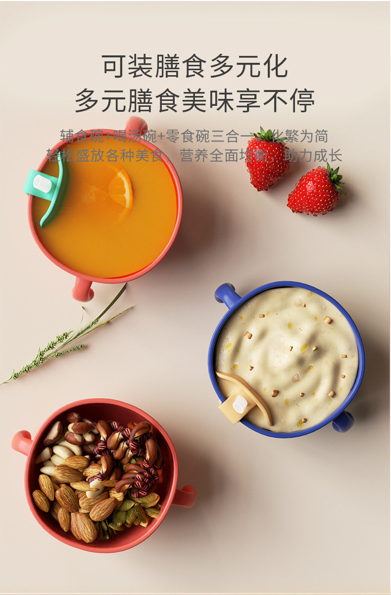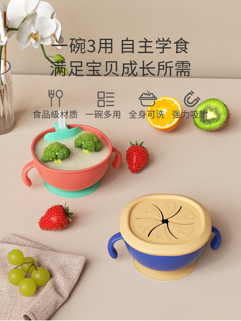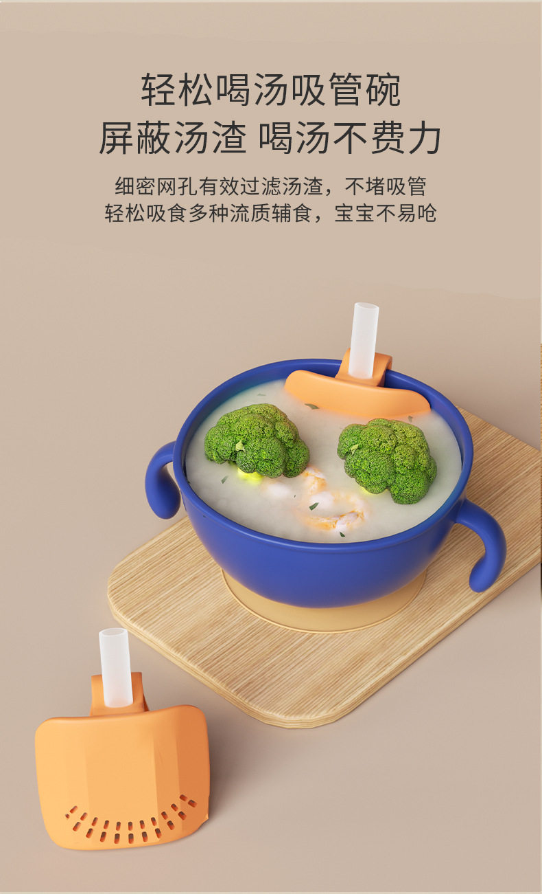 Baby Soup Food-Grade Straw Bowl Three-In-One Baby-Specific Supplementary Food Suction Cup Children's Tableware Set for Feeding