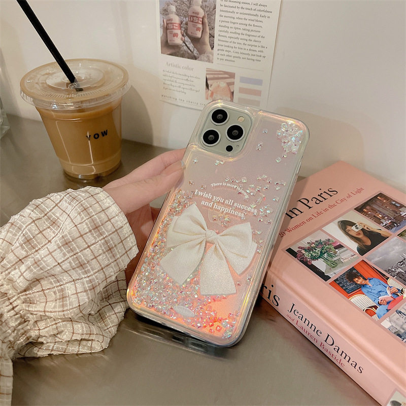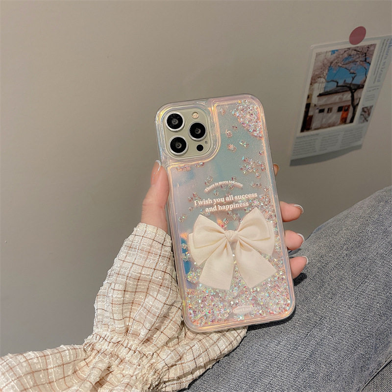 Bowknot Diamond Quicksand Case Suitable for Apple 17 Pro Max Phone Case iPhone 13/14 Set 16 Anti-Drop 2 for Women