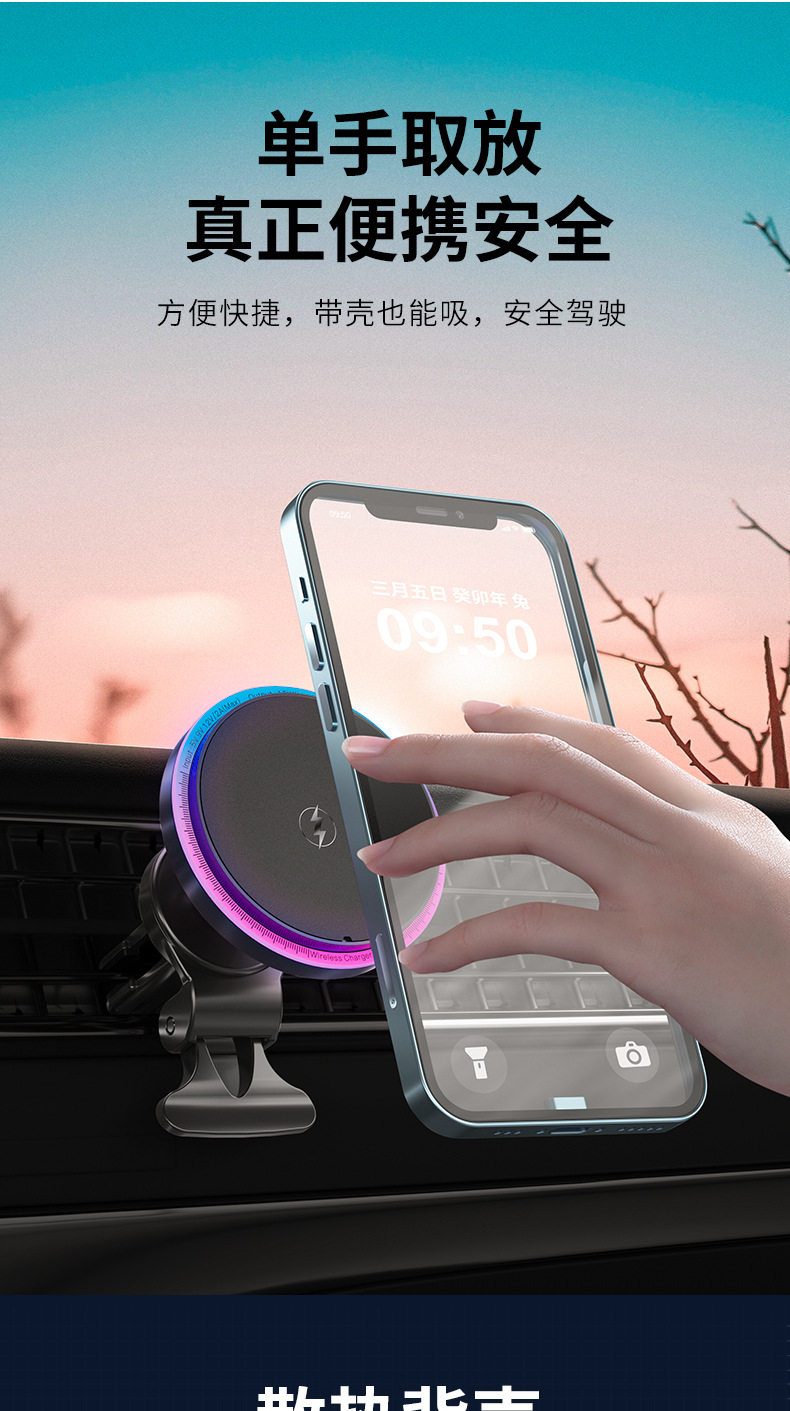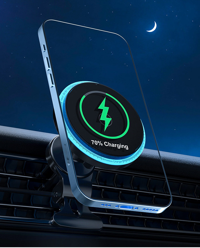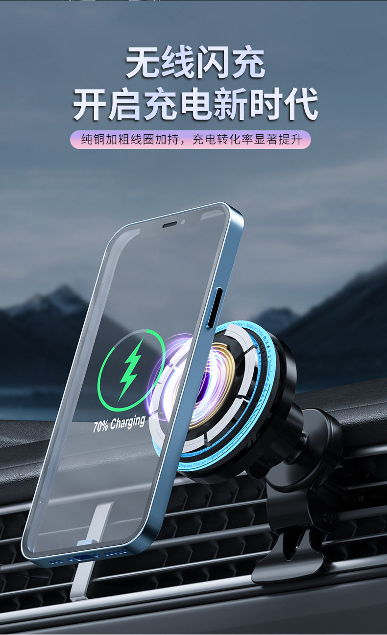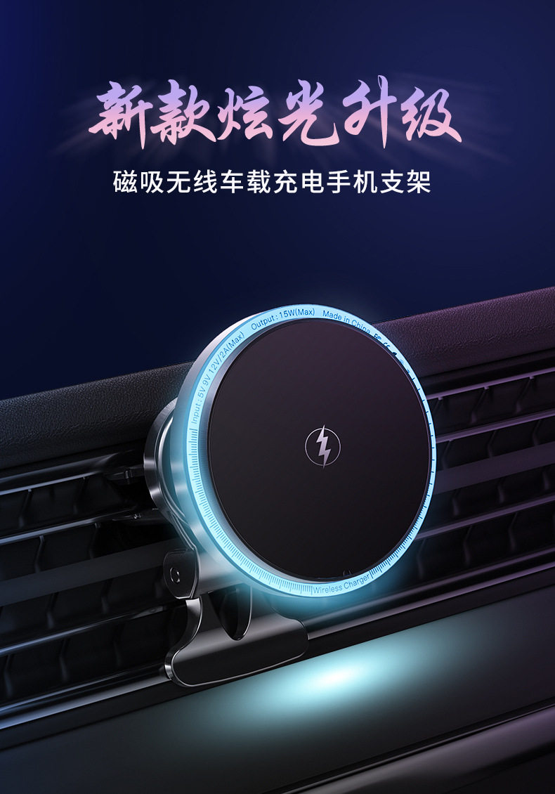New light car magnetic wireless charger car air outlet navigation magsafe mobile phone bracket wholesale