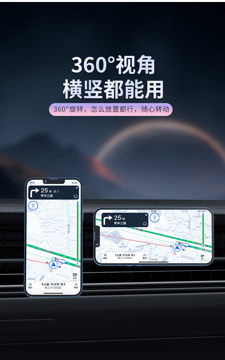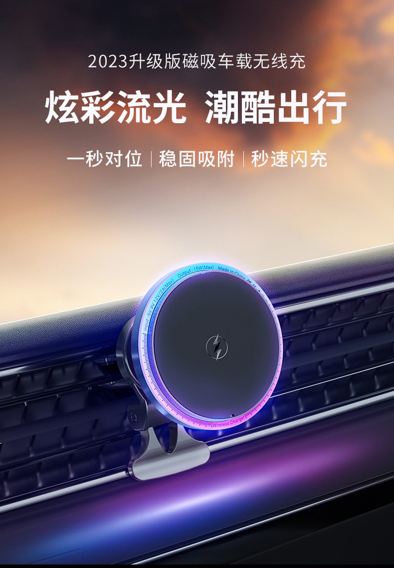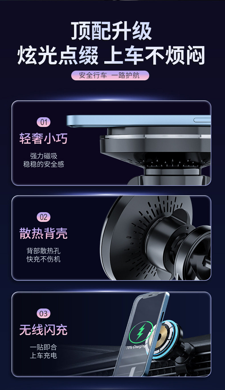 New light car magnetic wireless charger car air outlet navigation magsafe mobile phone bracket wholesale