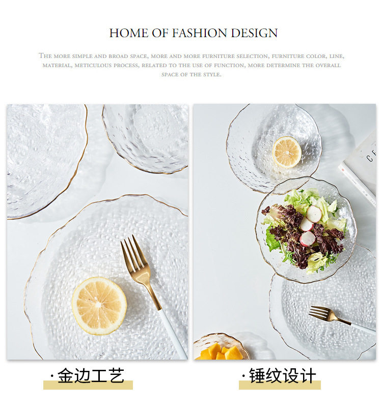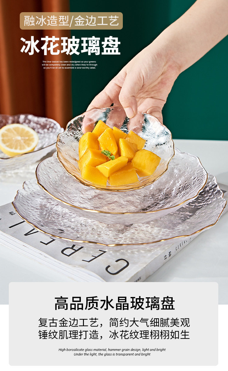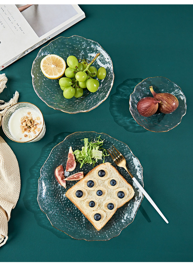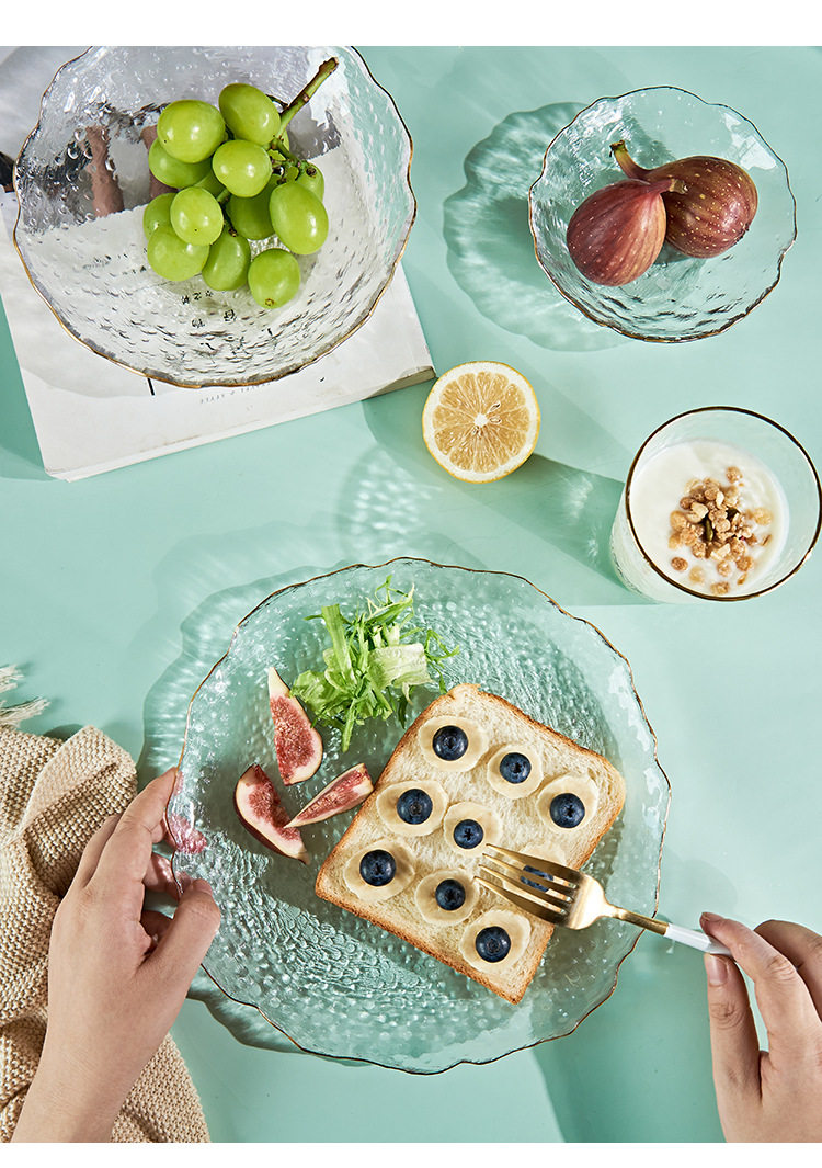 ins Style Glass Breakfast Plate Fruit Plate Nordic Style Creative Internet Celebrity Dish Plate Home Snack Plate Western Food Plate