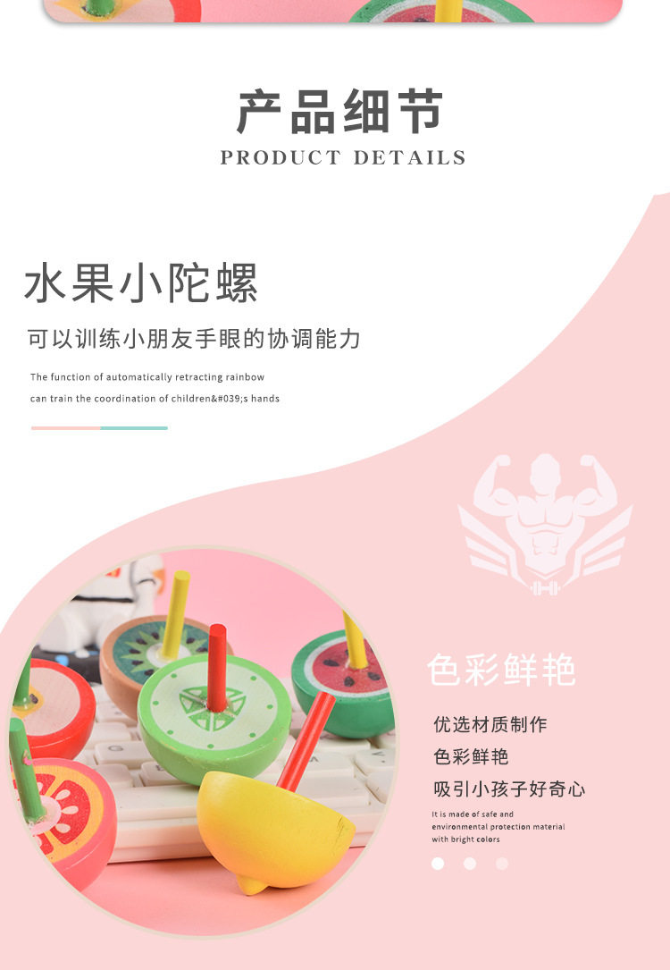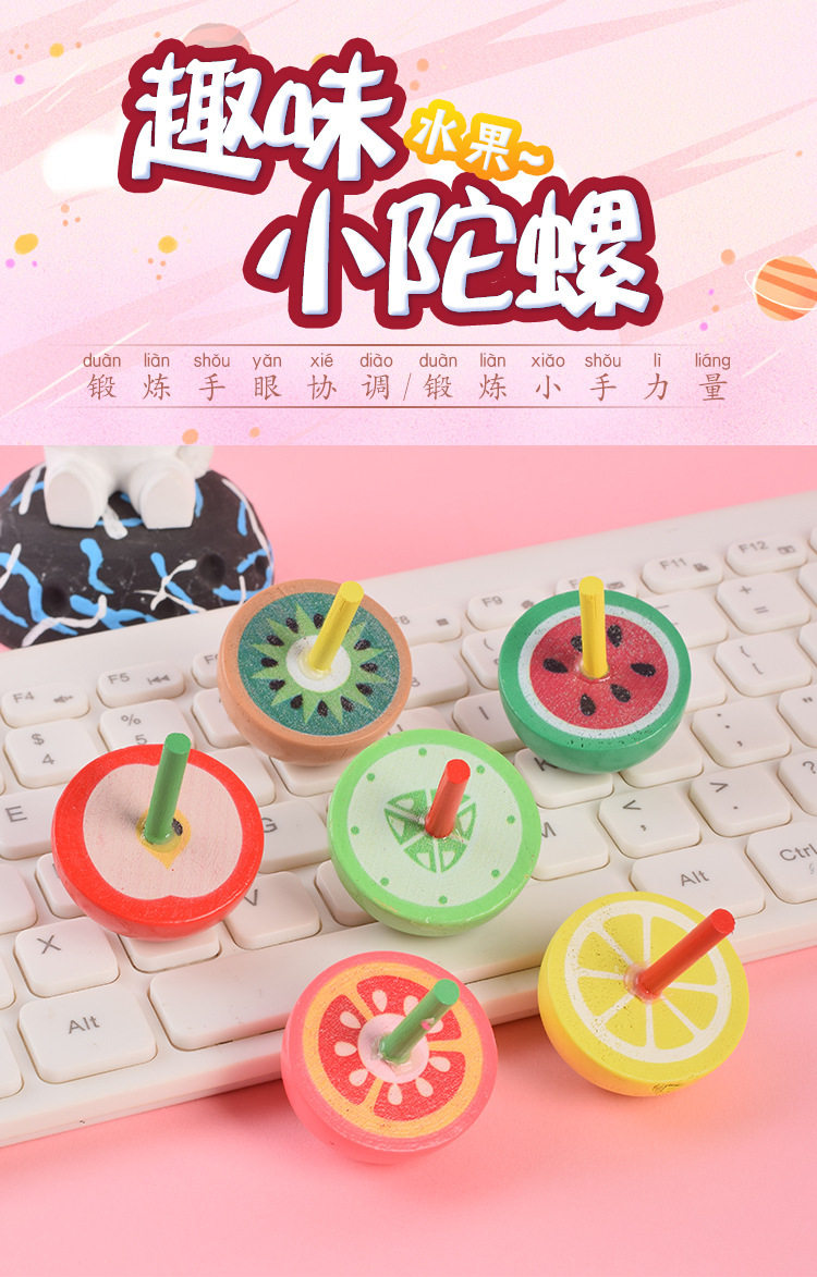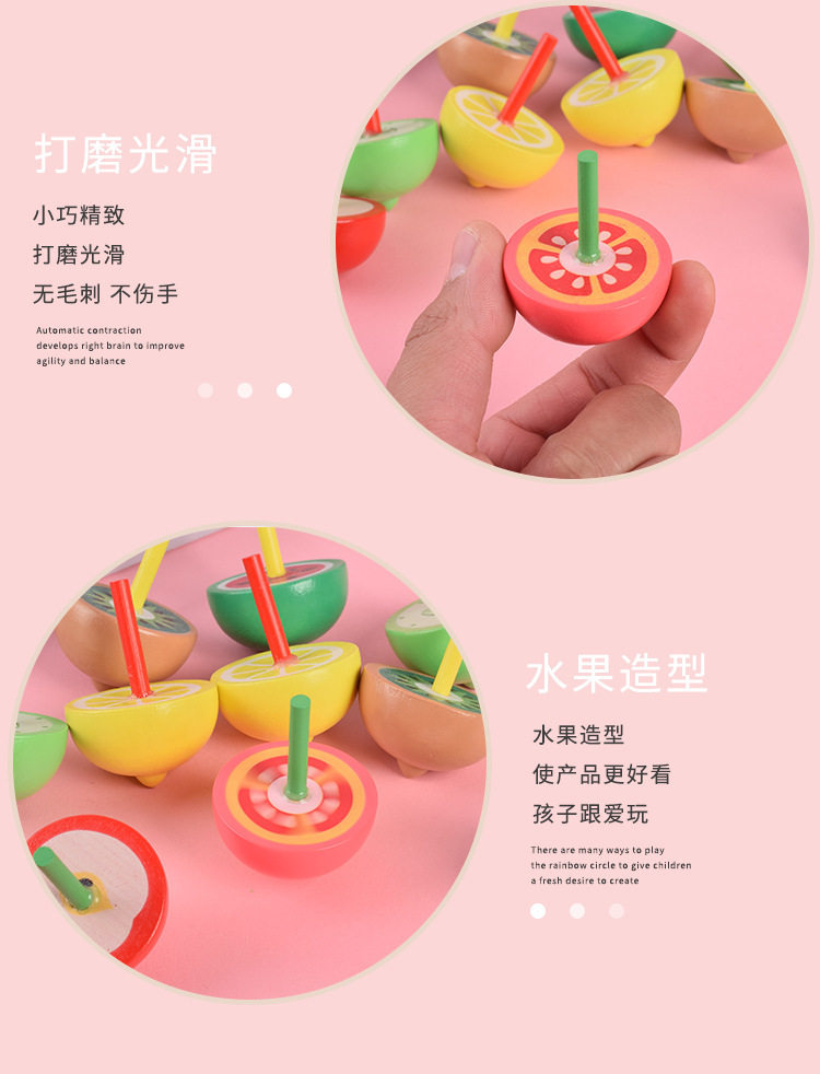 Wooden fruit small gyro manual rotating color gyro nostalgic children's educational toys kindergarten student gifts